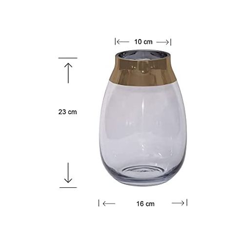 Key Features: MODERN STYLE – this vase is modern and contemporary with it’s classic lines and luxurious highly polished gold top it will beautifully compliment any space in your home SUPERB QUALITY – the highly translucent shine of the glass highlights the quality and substance of craftmanship in the material and the design of this beautiful vase EMBELLISH YOUR HOME – the classic, stylish lines of this vase will truly compliment any decor in your kitchen, dining room, living room or bedroom, offering an eye-catching centre for real or artificial flower displays UNLIMITED USES – this vase can beautifully compliment many different uses. Try placing small LED lights (not included) inside the vase to create a stunning centrepiece for weddings and events or mood lighting for those dark winter nights PERFECT SIZE – with highly balanced proportions (base 16cm x height 23cm x neck 10cm) this vase is both small enough to garnish any table in your living room or dining room and large enough to create a stunning centrepiece decoration anywhere in your home