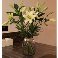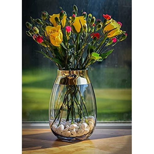 Glass Lights, Flower Vase With Gold Top Rim, lights, For table, living room, kitchen Decor. This classic yet modern, contemporary style of vase will sublimely decorate any space in your home. Made of highly translucent, beautifully stylish grey glass it is designed to compliment any style of decor. Add arrangements and bouquets of real flowers such as roses, lillies or tulips, or of artificial flowers, plants or twigs to create stunning centrepieces for your kitchen, living room, dining room or bedroom space. The vase is beautifully designed, each piece individually crafted. It has a highly polished gold top beneath a cold cut rim which has received special after-processing treatment making it beautiful to look at as well as smooth and safe to handle. The base of the vase is exceptionally well produced, with superb quality glass creating a substantial, well balanced shape to accentuate both small and large decorative arrangements. This vase is a stunning addition for a variety of uses around your home and living space – in addition to flowers and arrangements, LED lights (not included) placed inside, turn this vase into a beautifully lit centrepiece display for your wedding or event or simply to light up the dark nights at home! This vase’s classic yet modern look would make a fabulous gift for an anniversary, wedding, a new home or maybe indulge and treat yourself, lift your mood and bring pleasure to those dark nights!