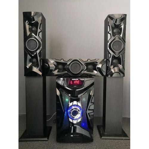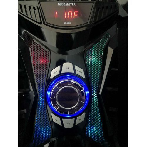 Key Features: Brand Name : GlobalStar Model Number : GS-3301 Input sensitivity:70dB Voltage :AC90V ~240V 50/60HZ Channels : (3.1) Material : Wooden & Plastic Output Power : 40W plus 15W*2 Speaker Unit : 6.5″ x1 / 3″ *3 DC 12V