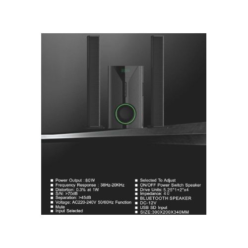 Global Star Sound Bar System 2.1 Channel GS-5503 Hifi Enabled – Black. Features Brand Name : GlobalStar Model Number : GS-5503 Input sensitivity:=70dB Voltage :AC:90V- 260V DC:12V 50/60HZ Channels : (2.1) Material : Wooden & Plastic Output Power : 40W+15W*4 Speaker Unit : 5.25″x1+2″ x4