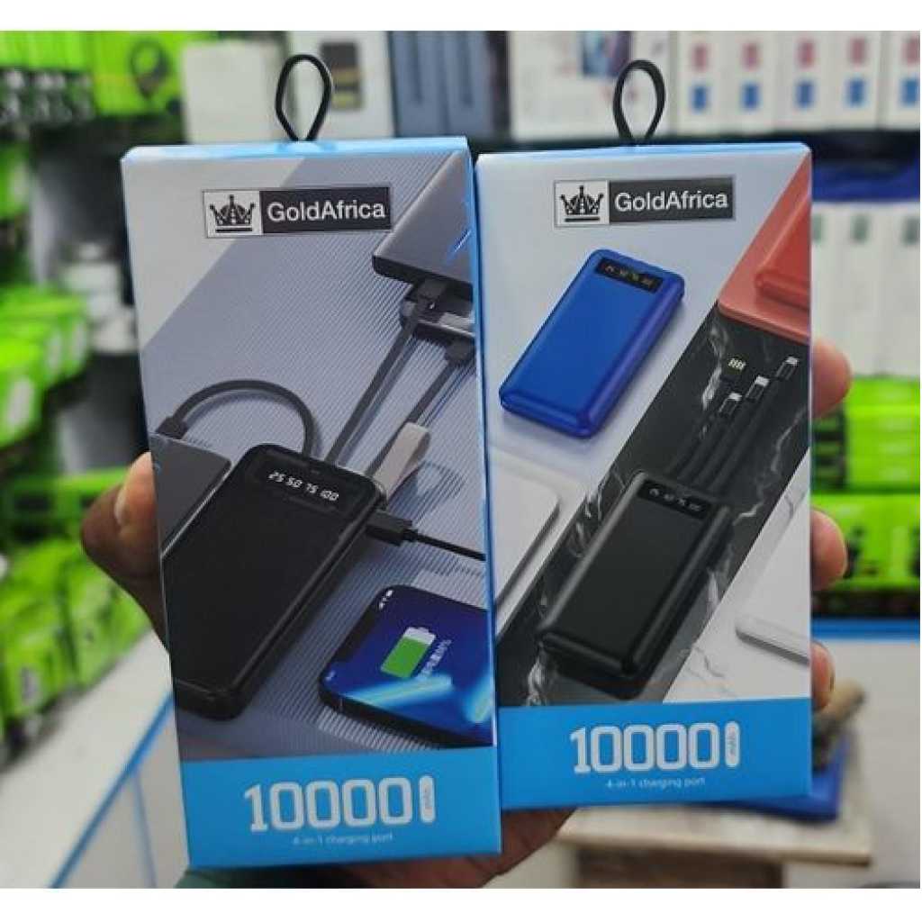 Gold africa USB Fast Charging Mobile Powerbank 10000mah 4 in1 Built in Cable Portable Li-polymer Batteries For Digital display Cellphone Power Bank- Multicolor