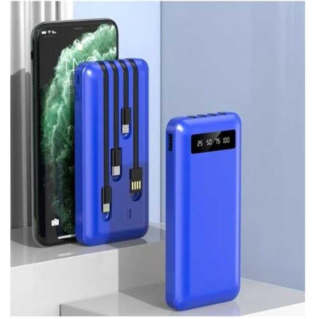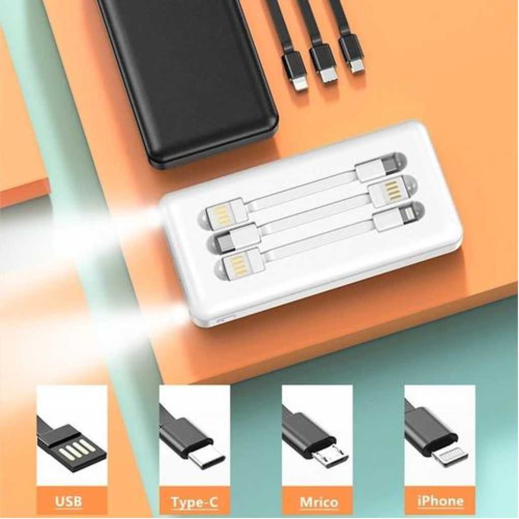 Gold Africa USB Fast Charging Mobile Powerbank 10000mah 4 in1 Built-in Cable Portable Li-polymer Batteries For Digital display Cellphone Power Bank- Multicolor There is no electricity inside the mobile power supply. Please charge for 12 hours after purchase! Please charge before use. Please charge before use. Please charge before use. Because of long-distance transportation, it is normal for products to arrive in the local area without electricity. Please charge before use! Orders can be delivered to your door, and the whole logistics process can be tracked! Delivery on the same day as the order is placed and the products will be delivered to you immediately! The platform supports return, please look for the POHB brand when purchasing! 10000 mAh large capacity, which supports you to use more equipment at the same time. Please look for the brand of POHB Professional as a large-capacity power bank. We make products carefully and meticulously, and the products will be checked before delivery to ensure that the products have no quality problems and are delivered to your hands! Please feel free to use it and wish you a happy life! Dual 5V/2.1A I/O multiple USB, support PD,type-c fast charging output, and can charge mobile phones, pads or other small electronic devices at the same time. The charging speed is increased by more than 92%, and the charging time can be saved by more than 50%. Use intelligent frequency division technology for intelligent charging without damaging your machine. Current required for adaptive equipment.1. technical tips for power pack battery: All the power supply groups use rechargeable batteries based on lithium technology. And lithium-ion polymer batteries are most commonly used in power packs. Battery technology is the key to many new developments: everything from mobile phones to electric cars, so it is very likely that some derivatives will become power banks. The two currently used technologies have slightly different properties:Li-ion: Li-ion batteries have higher energy density, that is, they can store more charges in a given size or volume, and the manufacturing cost is lower, but there are still aging problems; Lithium polymer: Lithium polymer power pack will not suffer from the same degree of aging problem, which is a better choice. And it provides you with high-speed charging enjoyment. The disadvantage is that their manufacturing cost is higher, so they may not meet the budget.2. Why did you choose the power banks?Smartphones are loaded with a large number of mobile applications, and fast operation is supported by efficient processors. These high-performance mobile devices consume a lot of energy provided by batteries, so reliable mobile accessories are needed to charge the batteries in order to enjoy the various functions available to them.