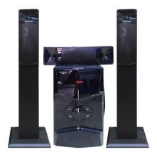 Golden Tech 3.1 Channel FM/SD Multi-Media Bluetooth Speaker Home System – Black It’s a Golden tech Multi media wireless bluetooth home sound system. This speaker has 3 small side speaker and one mother central bass speaker. The speaker has an FM tuner and a LED display at the front. This woofer also reads SD/USB card.