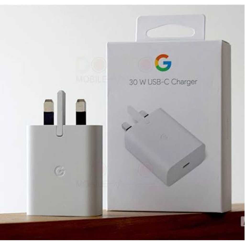 Charge your Pixel phone and other USB-C devices quickly with the Google 30W USB-C Charger.[1,2] It’s thoughtfully designed using recycled materials, so you can feel good about using it.[4] And it’s compact enough to take wherever you go.[1]USB-C is a registered trademark of USB Implementers Forum. Compatible device sold separately.[2]Requires compatible USB-C device (sold separately). Charging speed varies and depends on device capabilities, battery age, usage during charging, and many other factors. Charging cable sold separately.[3]Compatible USB-C devices sold separately.[4]The plastic for the adapter’s enclosure is made from 50% post-consumer recycled material.