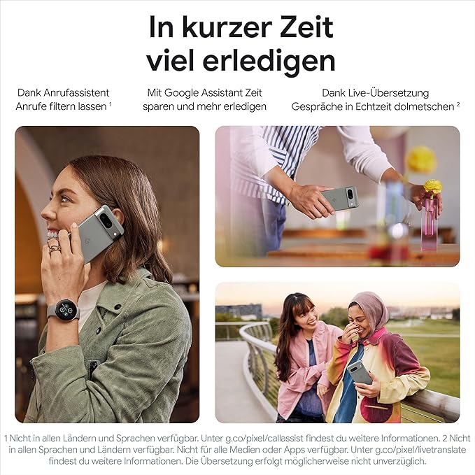 Google Pixel 8 8GB 128GB 5G, Google AI, 50MP Crystal Clear Camera, Super Battery, 6.2 Inch AMOLED Display Screen The fully upgraded Pixel 8 camera uses Google AI to help you create memorable photos and videos, day or night. The Pixel Camera records smooth videos with stunning resolution and clear audio, even in crowded, dimly lit places. Built with Google AI, Pixel 8 makes it even easier to screen calls, connect in new languages, and more.