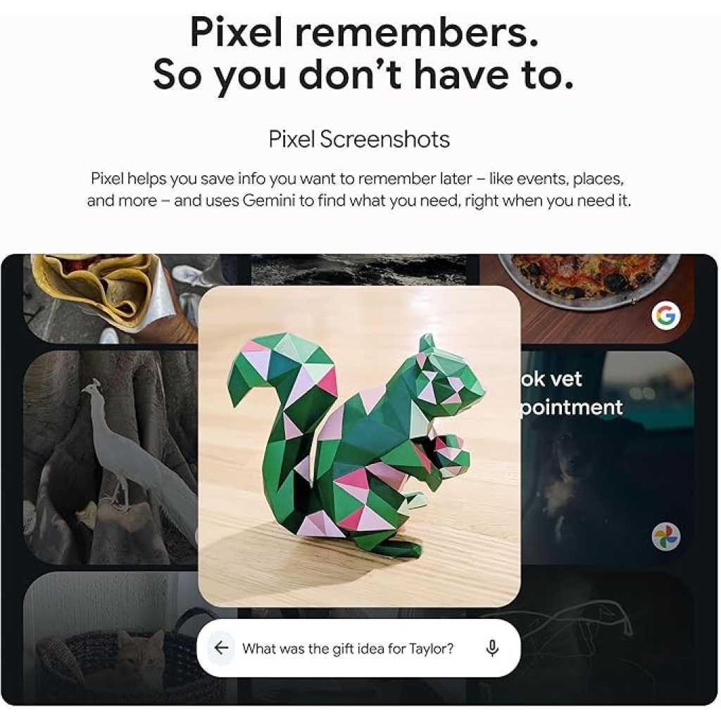 Google Pixel 9 Pro 16GBRAM 512GB Storage, Android Smartphone with Gemini, Triple Rear Camera System, 24-Hour Battery, and 6.3″ Super Actua Display, Black Meet Pixel 9 with Gemini. Engineered by Google, Pixel gets the best of Google AI first. So you can take amazing photos and get things done even easier. Pixel can protect against spam and other threats. It helps you in an emergency.[9] And it’s built to last. Add Me makes sure no one is left out. Take a photo with the group, then swap in the photographer.[2] Ask Gemini about whatever’s on your screen. You can even take a photo and get help in real life.