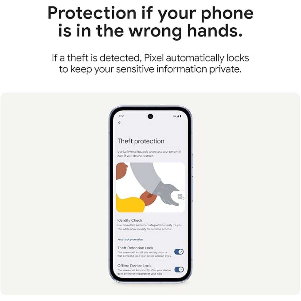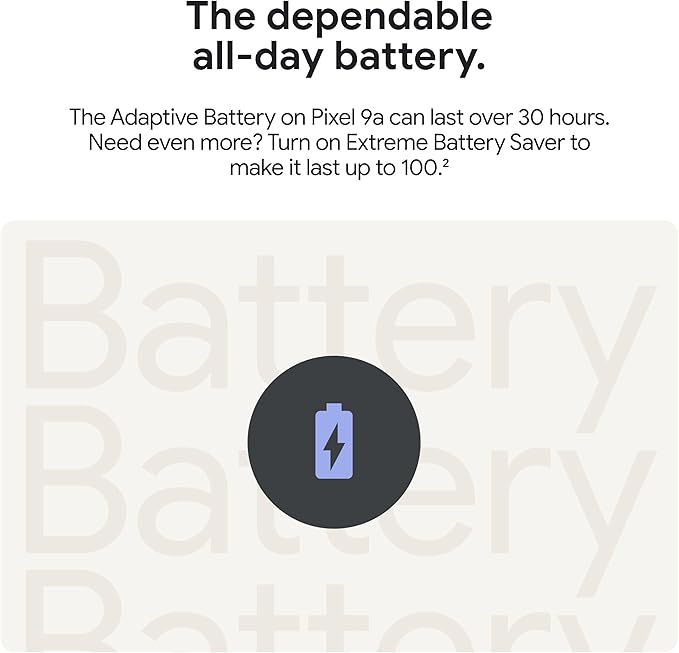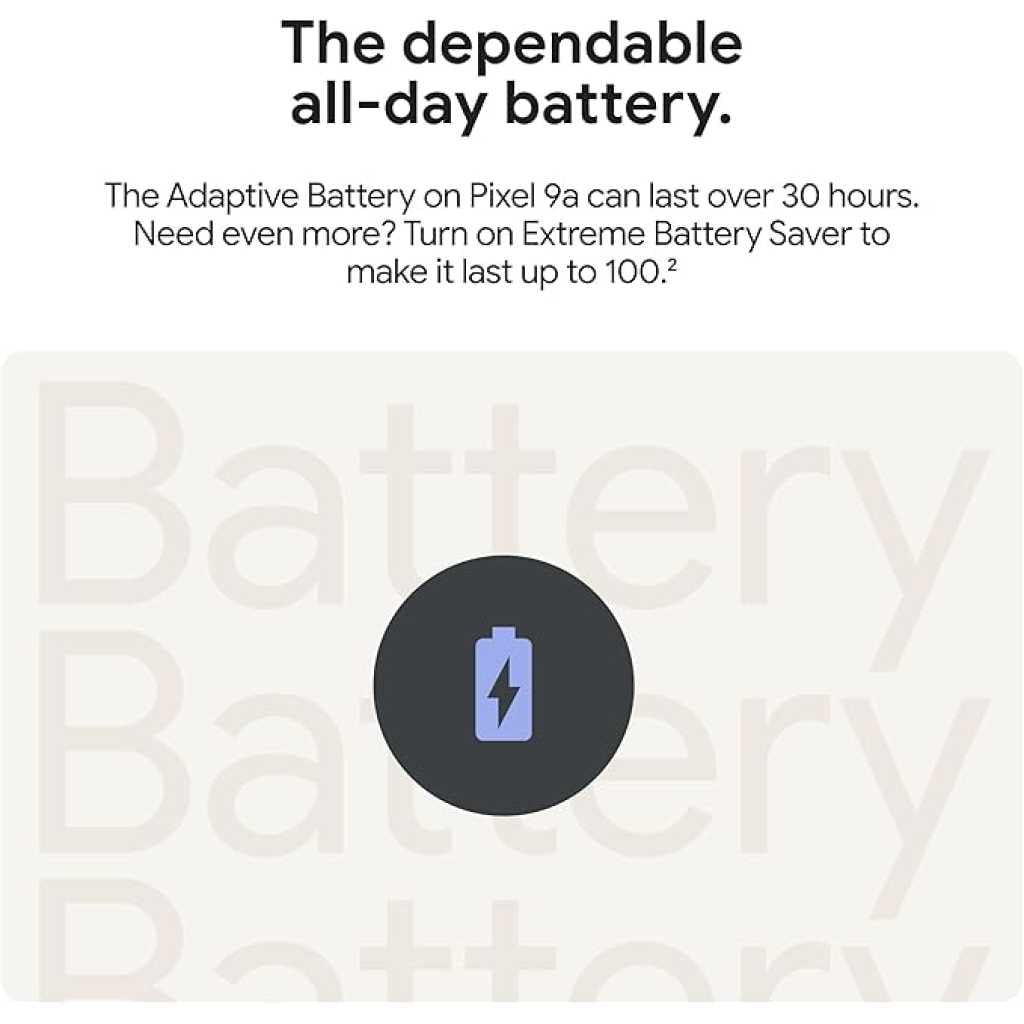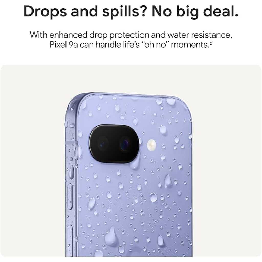Google Pixel 9a 12GB RAM 128GB Gemini Android Smartphone with Incredible Camera and AI Photo Editing, All-Day Battery, and Powerful Security Google Pixel 9a is engineered by Google with more than you expect, for less than you think; like Gemini, your built-in AI assistant, the incredible Pixel Camera, and an all-day battery and durable design Take amazing photos and videos with the Pixel Camera, and make them better than you can imagine with Google AI; get great group photos with Add Me and Best Take; and use Macro Focus for spectacular images of tiny details like raindrops and flowers Google Pixel’s Adaptive Battery can last over 30 hours; turn on Extreme Battery Saver and it can last up to 100 hours, so your phone has power when you need it most Get more info quickly with Gemini; instead of typing, use Gemini Live; it follows along even if you change the topic; and save time by asking Gemini to find info across your Google apps, like Maps, Calendar, Gmail, and YouTube Music Pixel 9a can handle spills, dust, drops, and dings; and with IP68 water and dust protection and a scratch-resistant display, it’s the most durable Pixel A-Series phone yet Unlocked Android 5G smartphone gives you the flexibility to change carriers and choose your own data plan; it works with Google Fi, Verizon, T-Mobile, AT&T, and other major carriers Google Pixel 9a comes with 7 years of OS and security updates, and new and upgraded features with Pixel Drops, so it keeps getting better and more secure over time With Pixel Call Assist, you can hear callers more clearly, avoid unwanted calls, speed through call menus, and more If theft is detected, Pixel automatically locks to keep your info safe; it can also detect a car crash and call for help, connect you with emergency services, and help prevent scams, phishing, and malware Please refer to the Legal section below for all applicable legal disclaimers denoted by the bracketed numbers in the preceding bullet points