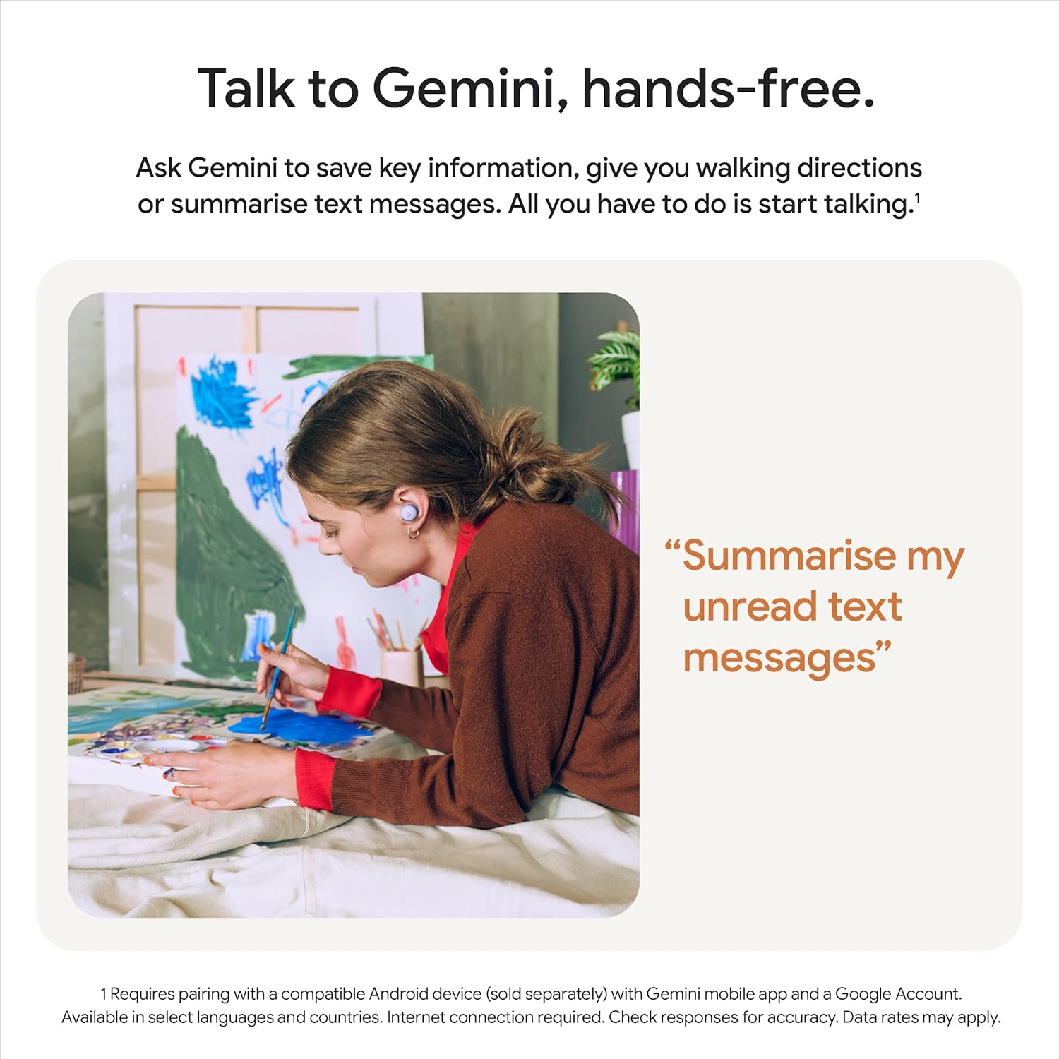 Hear only what you want to hear. Active Noise Cancellation with Silent Seal 1.5 helps block external noise. Or, switch to Transparency mode to hear the world around you. Every sound, crystal clear. Immerse yourself in clear, crisp audio with the 11 mm dynamic speaker driver. And customise sound levels with the 5-band equaliser. Twist for a secure fit. Secure your Pixel Buds 2a during workouts or commutes with the twist-to-adjust stabiliser. Or twist the other direction for relaxed comfort. Ultra light. Ultra comfortable. Inspired by the industry-leading design of Pixel Buds Pro 2, Pixel Buds 2a are built for lightweight comfort and impeccable fit. Hear and be heard with Clear Calling. It helps block background noise – so wind, external chatter or other distractions in your environment won’t interrupt your conversations. A battery that lasts. Up to seven hours of listening time with Active Noise Cancellation on, or 20 hours with the charging case. Get one hour of listening time with a 5-minute charge. Talk to Gemini, hands-free. Gemini can find info from recent emails, give you walking directions or brainstorm in real time. All you have to do is start talking. Protection from sweat droplets to sudden drizzles. With IP54 sweat and water resistance, Pixel Buds 2a are built to last, so you can stay in your groove without moisture dampening the moment. Control settings with Gemini using your voice. Ask Gemini to adjust your settings without having to pull out your phone – turn on Active Noise Cancellation, pump up the bass and more. Google Tensor A1 powers every beat. With the Tensor A1 chip in Pixel Buds 2a, music is crisper, richer and more detailed, and calls are clearer than ever before.