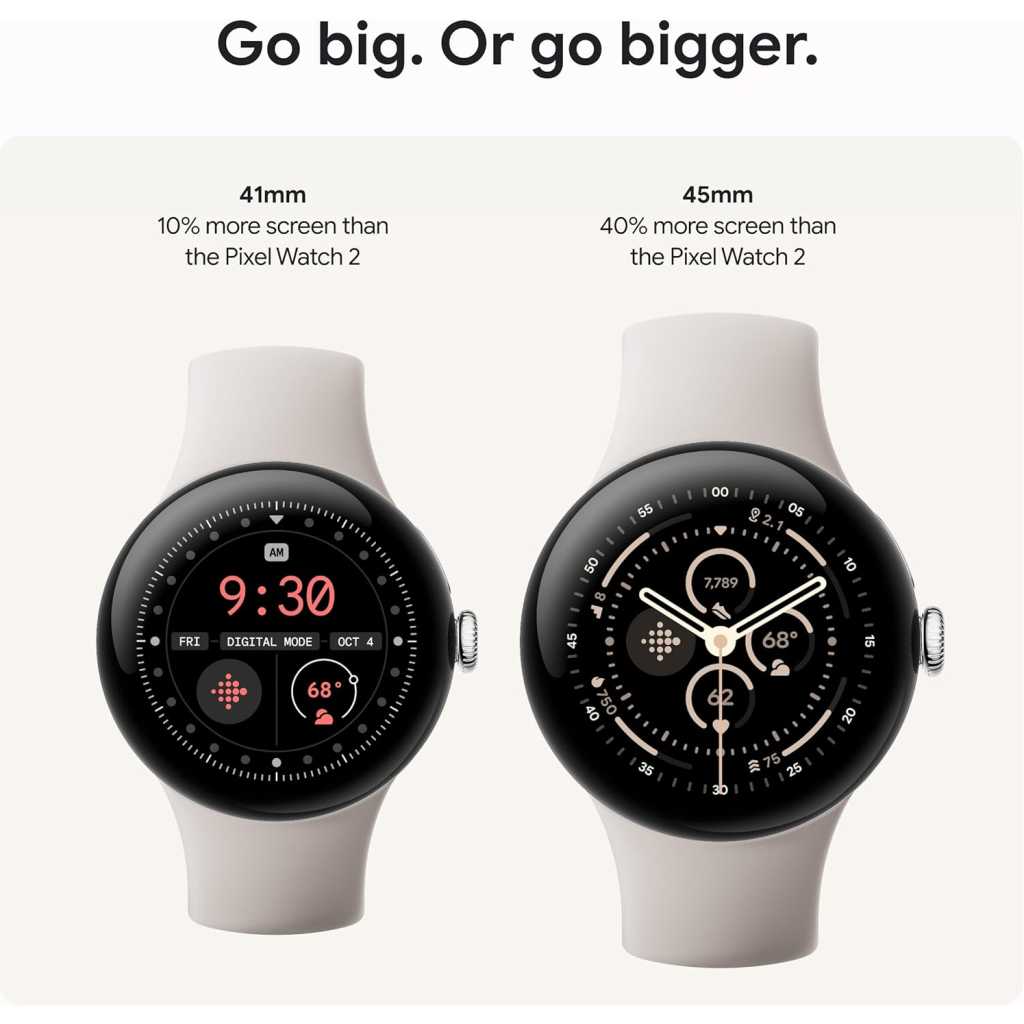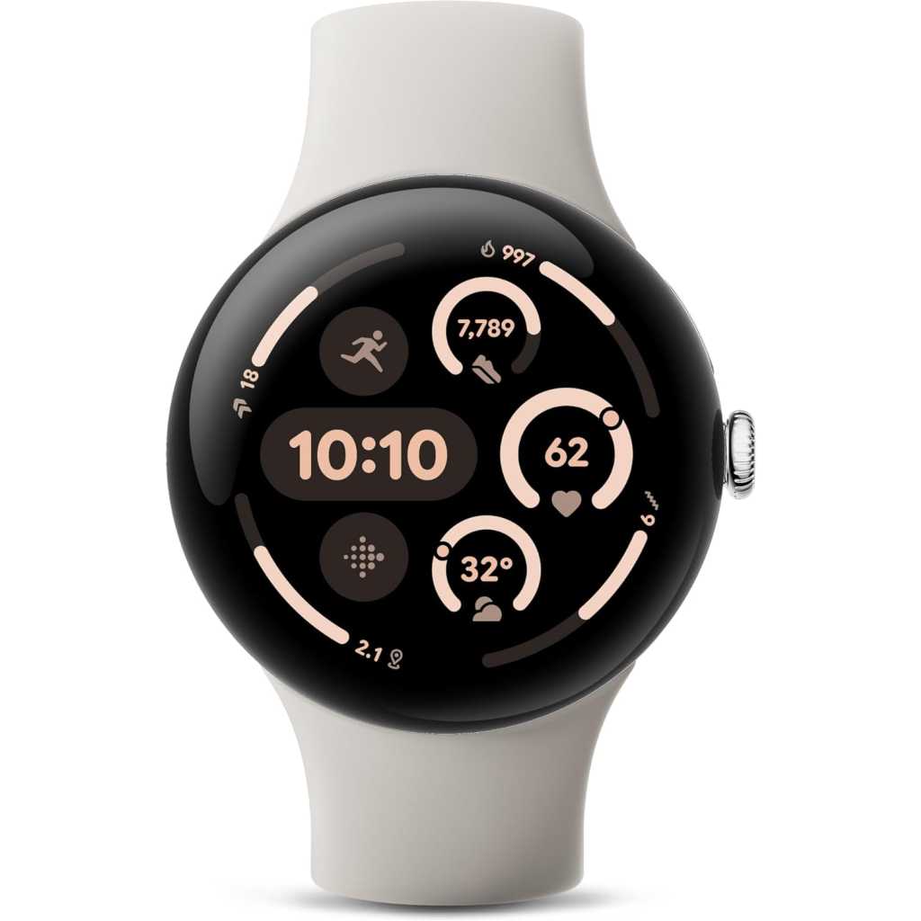 Key Features: The Google Pixel Watch 3 is designed for performance, with advanced fitness from Fitbit[1,2]; the 41mm screen is twice as bright and 10% larger than before, making it easier to see your stats and info[1] Maximize your performance with advanced running features; build custom run workouts and get real-time guidance and advanced form tracking[3] Enhance your run routine with Fitbit Premium; Google AI uses your goals, past runs, and readiness to power personalized run recommendations[3] Know what your body is ready for each day with readiness; it uses sleep, resting heart rate, and heart rate variability to show if you’re ready to take on a workout or prioritize recovery[3] Cardio load measures how hard your heart works so you can see how hard you’ve pushed; compare trends to see if you’re under- or over-training[3]; and receive a daily target based on cardio load and readiness levels