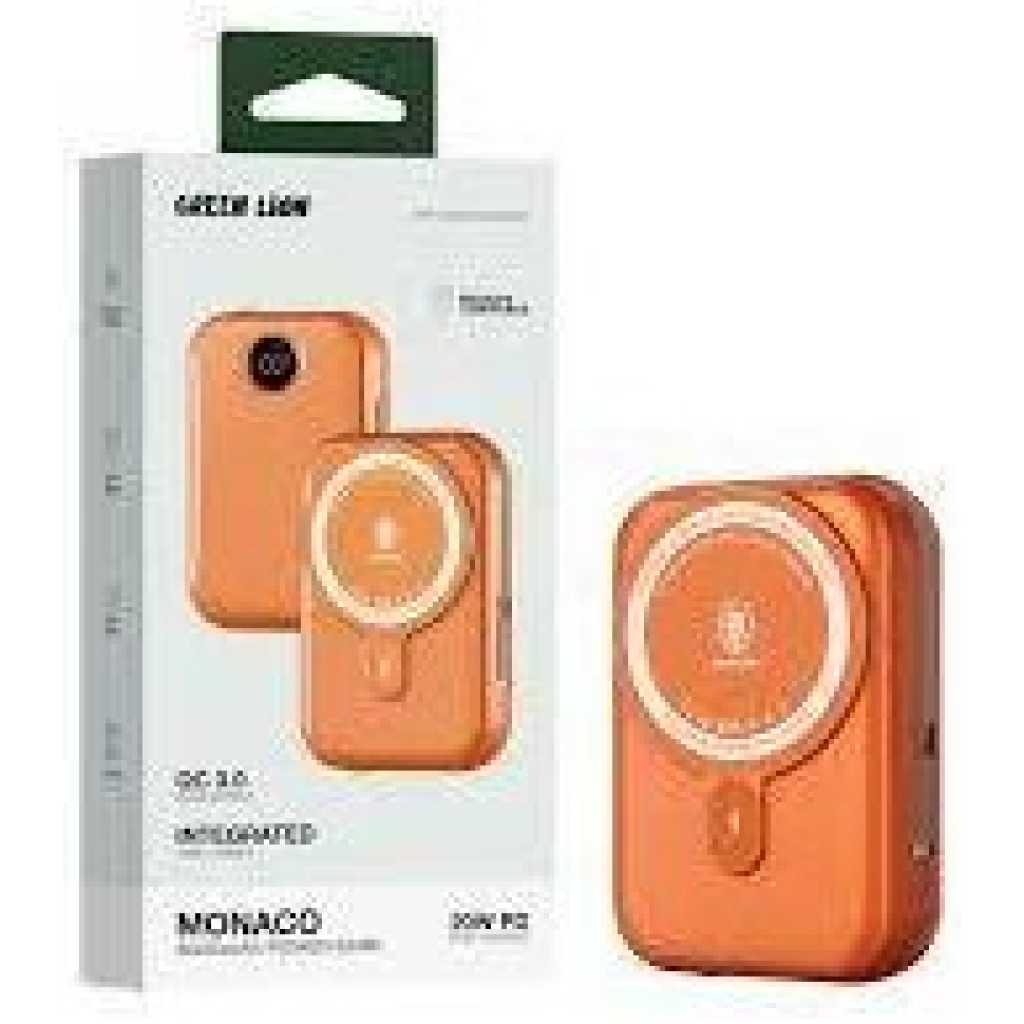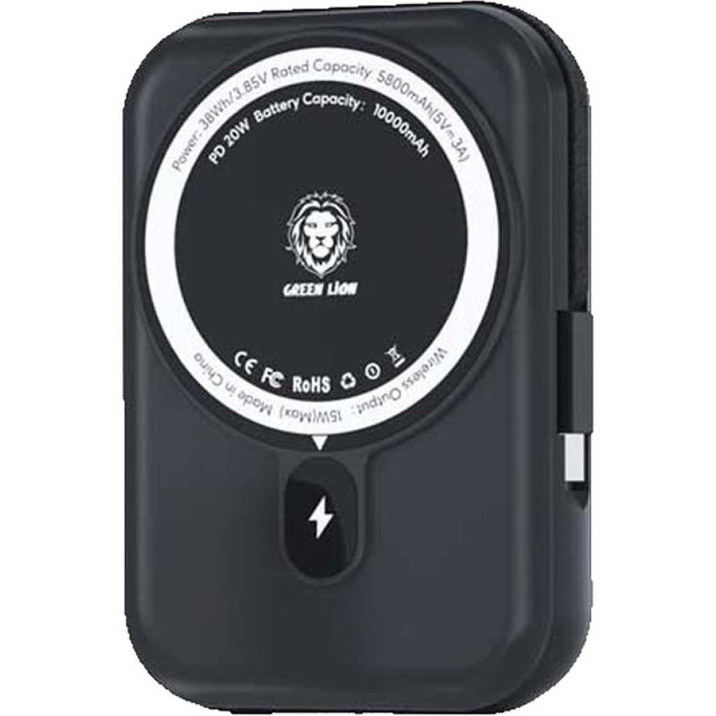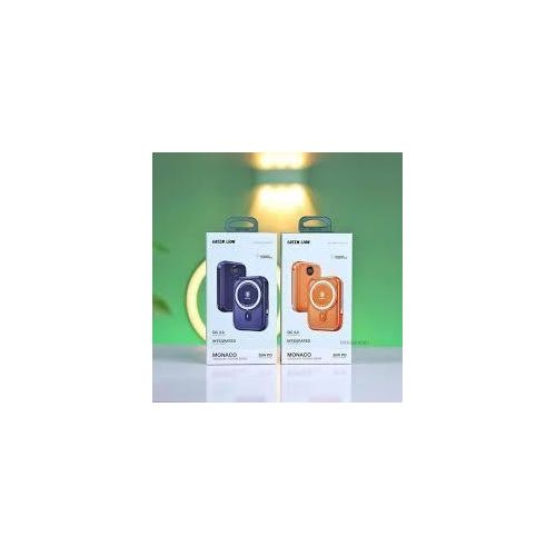 Product Description This power bank can be used with smart devices that support wireless charging, allowing you to charge devices without the need for any charging cable. The Green Lion Monaco Magsafe Power Bank is distinguished by the quality of its materials, its suitable size, and ease of use. Features of the Green Lion Power Bank: Designed in a practical and efficient manner Made from high-quality materials Battery capacity of 20000 mAh This power bank is compatible with devices that support wireless charging Includes a charging cable for charging additional devices The large capacity allows for multiple charges of your device Lightweight and compact, making it easy to carry to different places The Green Lion 20000mAh Monaco MagSafe Power Bank is made to keep your gadgets charged wherever you are at any time. It is the ideal combination of power, efficiency, and convenience. It features built-in MagSafe wireless charging . This guarantees a strong magnetic pull for a safe, easy connection. You can enjoy effortless charging without cords. The built-in Type-C cable is an all-in-one solution for your power needs. It provides quick and reliable wired charging. Enjoy more freedom with this convenient option. This power bank features 20W Power Delivery for fast charging. You can quickly recharge your device’s battery, so you spend less time waiting. Real-time battery status updates are provided by the LCD display , so you’re always aware of your power levels. Even with its large 20000mAh battery , it’s still lightweight and small ( 335g ), which makes it easy to carry in your pocket or purse. It is designed for long-lasting performance, whether for daily use, travel, or work, using strong ABS and PC materials . The Green Lion Monaco MagSafe Power Bank is a must-have accessory for modern, on-the-move lifestyles thanks to its power, portability, and creativity.