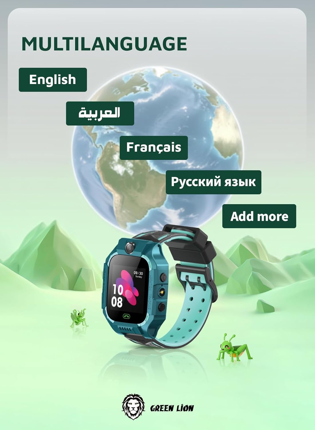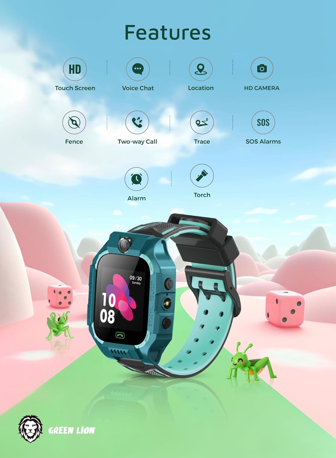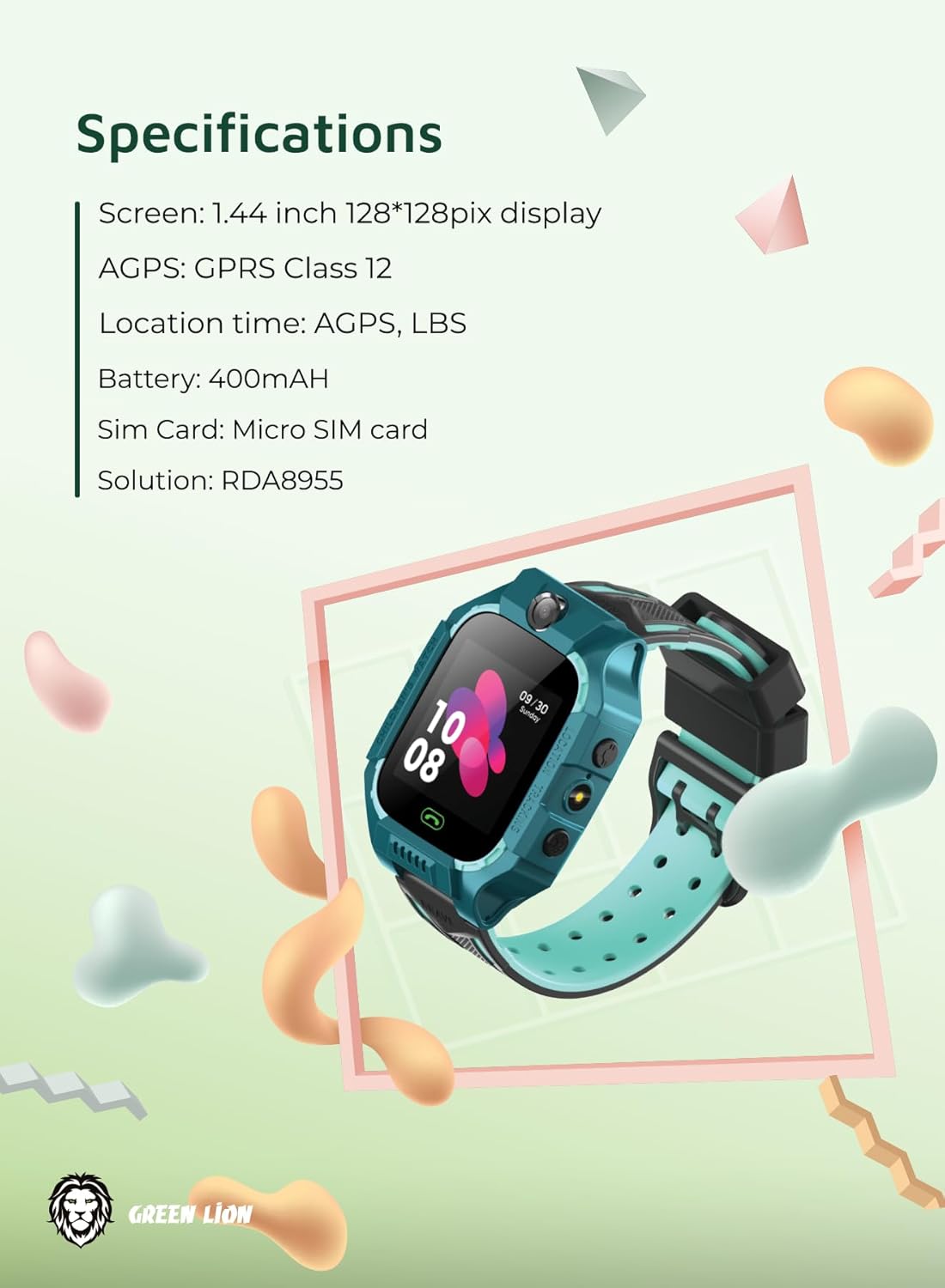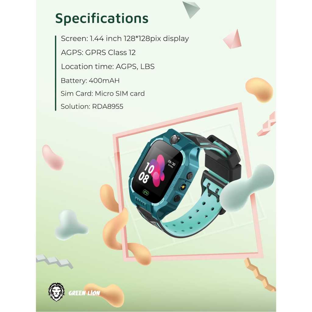 Green Lion 2G Kids Smart Watch Series 5,HD Touch Screen,HD Camera,Torch,Trace,Location,Fence,Alarm,Multilanguage,400mAh Battery Capacity,1.44 Inches 128×128pix Display,5 Days Standby Time