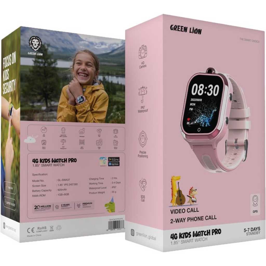 GREEN LION 4G Smart Watch for Kids - Pro 1.85 inch IPS 240x280, Smartwatch for Girls, HD Camera, Voice Chat, Video Call, SOS Call, GPS, Up to 4 Days Working Time, Precise Positioning, Support 4G Volte