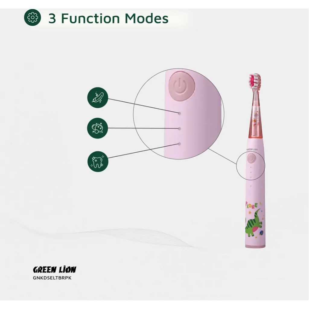 GREEN LION Electric Toothbrush for Kids with 3 Function modes and 2 Intensity Modes / Shining Lights / 2Brush Heads / for 2-10 Years Old / Food-Grade Bristles/ Children Oral Hygiene Tooth Brush