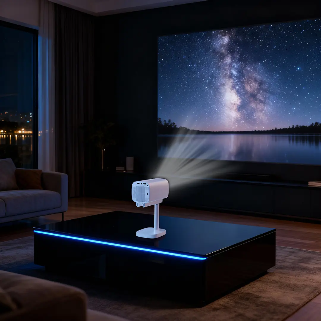 Key Features: Built-In 3W Speaker 90° Tilt & Stand USB-C PD Input 30000 Hours Long LED Life Auto Keystone Correction Easy-Turn Ring Focus Manual Focus Adjustment Adjustable Projection Size 720P HD Android 13 150 Ansi Lumens Brightness Adjustable Distance HDMI USB-A V5.0 Bluetooth