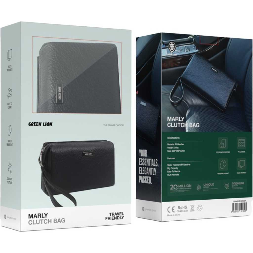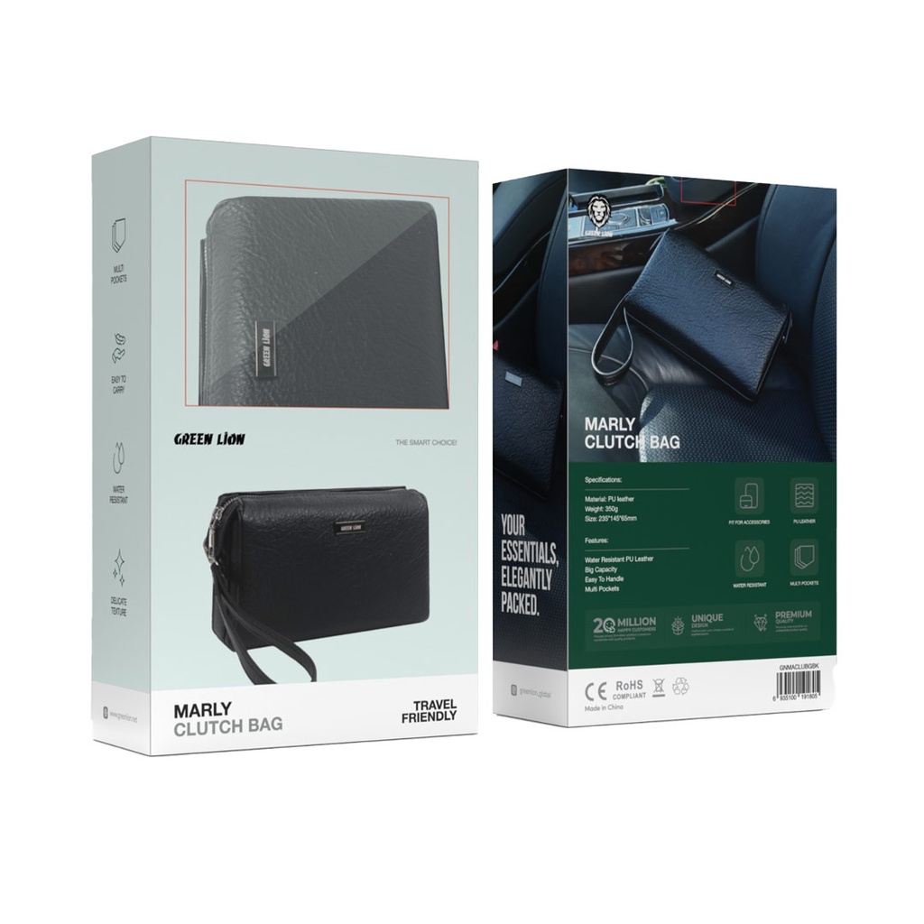 GREEN LION Marly Clutch Bag / Casual and Formal / Water Resistant / PU Leather / Fit for Accessories / Easy to Handle / Big Capacity / Multi Pockets / Delicate Texture - Black