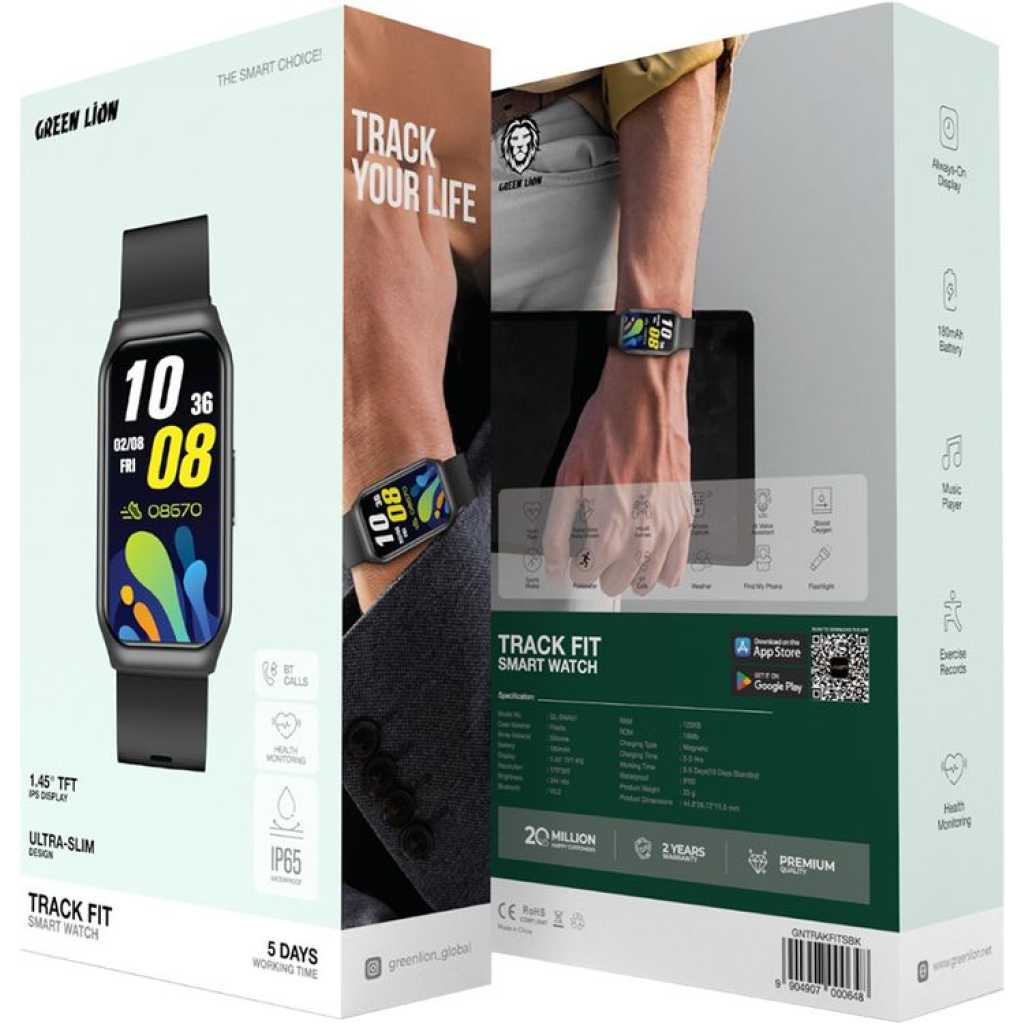 Green Lion Track Fit Smart Watch with 1.45" TFT IPS Display, Bluetooth Version 5.2, Magnetic Charging Type, 2-3 Hours Charging Time, 3-5 Days Working Time, 170 × 320 Pixels Resolution, IP65 Water Resi