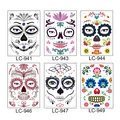 Halloween Cosplay Vandtæt Midlertidig Skull Face Tattoo Sticker Makeup Kjole Kunst Rekvisitter