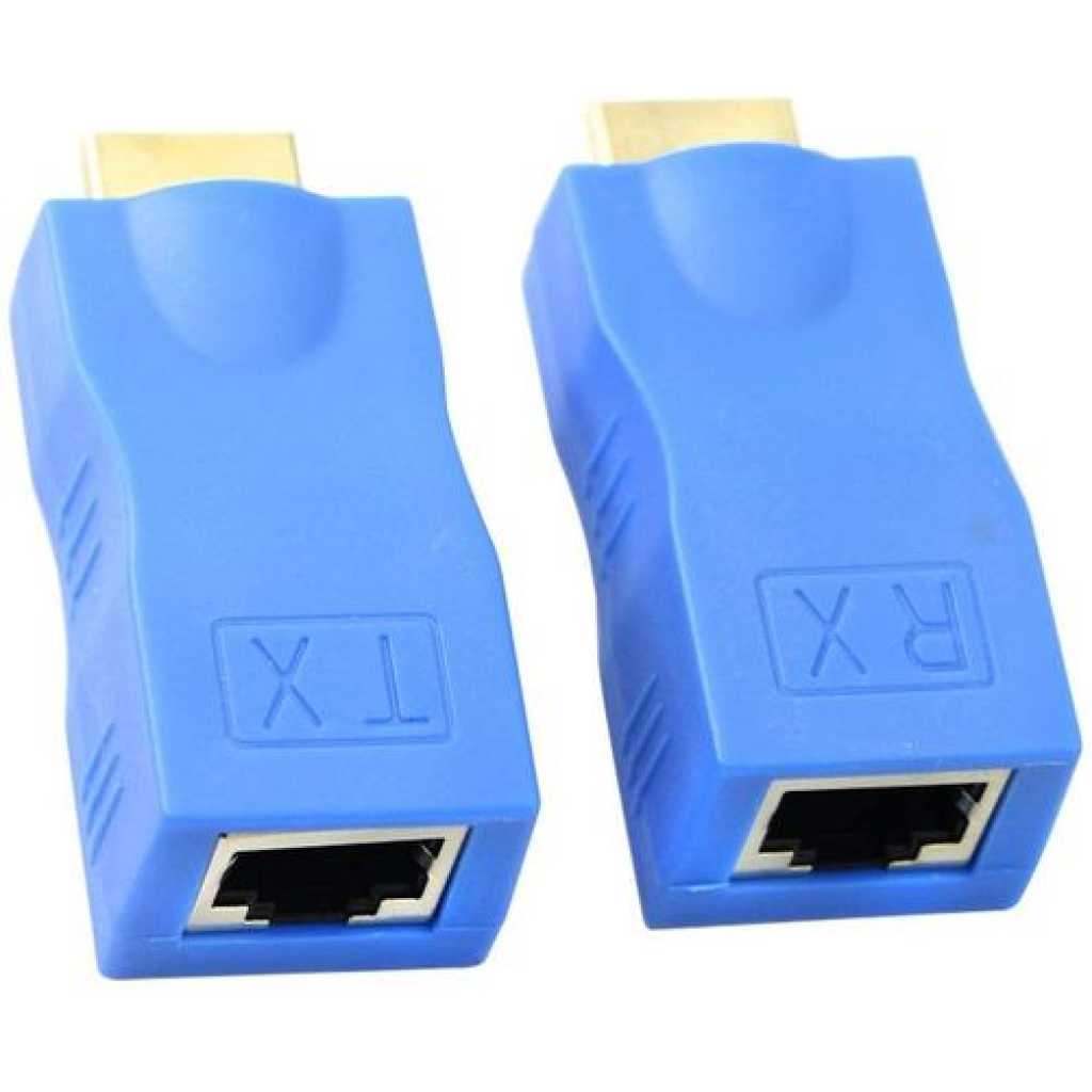 Key Features: HDMI Extender By Cat-5e/6 Cable -Blue. Easy to use: one pair as a complete functional module, no configuration. Long transmission distance: Cat-5e / 6 cable can replace HDMI cable to achieve long-distance transmission. High-definition: using Cat-6 cable transmission distance up to 30 meters to 1080p. Portable No power Needed