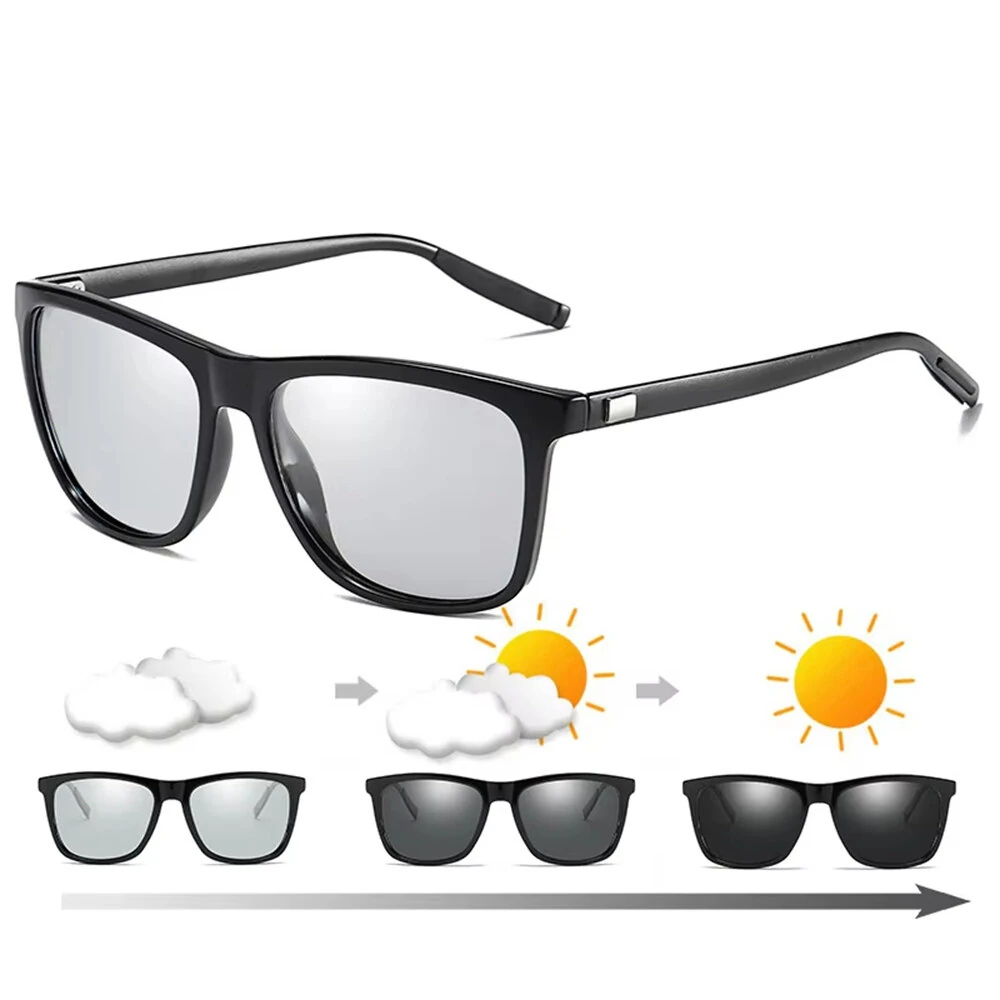 Herre fotochromiske solbriller klassiske firkantede UV400 polariserede udendørs cykelbriller