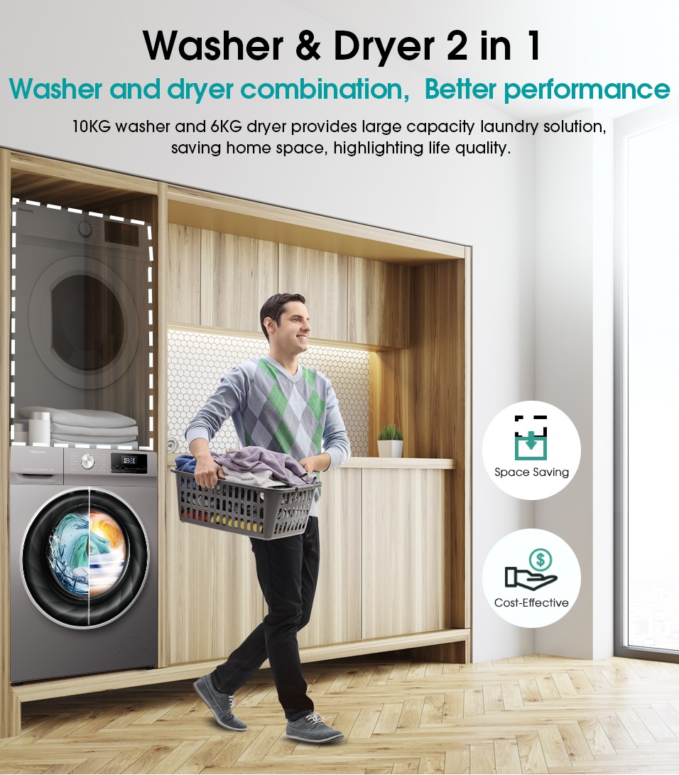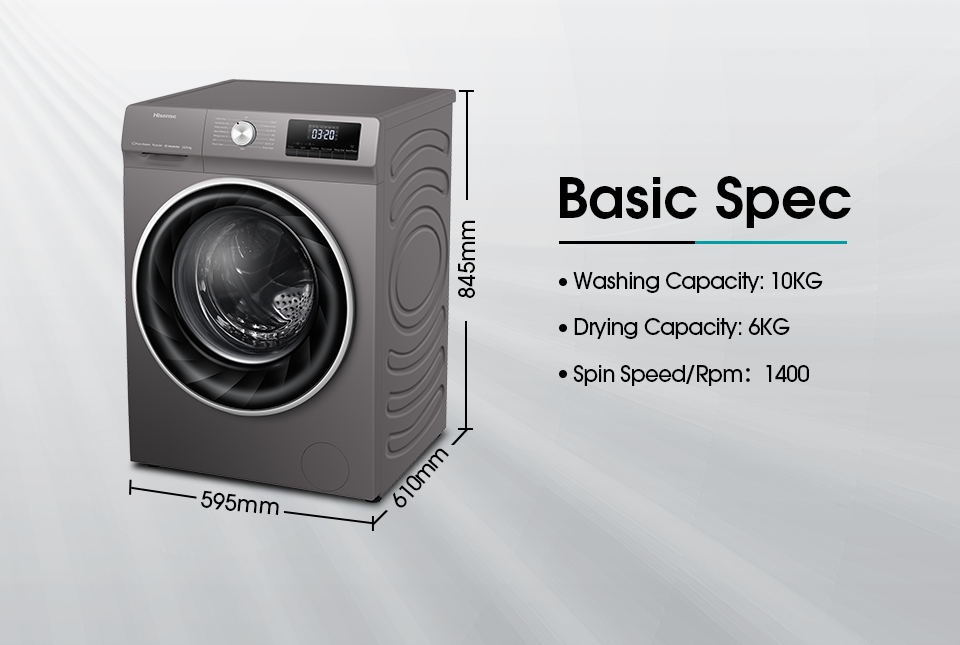 Hisense 10kg Washer And 6kg Dryer Washing Machine WDQY1014EVJM; 1400rpm, A+, – Grey