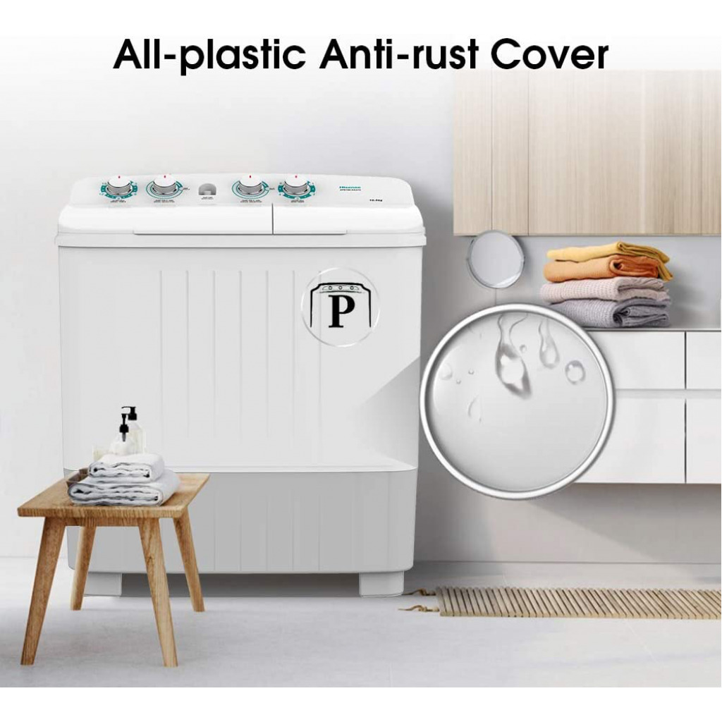 Hisense 14kg Twin Tub Washing Machine WSBE141 – White. The Hisense 14Kg Twin Tub Washing Machine with streamlined designed washing machines come with user-friendly control panels, as well as the options and performance you need. Hisense line of washing machines offer innovative features including Top load – Depending on your preference, the Hisense washing machine models are designed to be energy and water efficient. Time/Space-Saving – Washer control timer runs for up to 15 minutes while the spin cycle timer runs for up to 5 minutes each load. Feel free to choose any time to wash. Easy to move and transport to anywhere, lightweight and space-saving design allows it easily fit in a bathroom or closet, ideal for camping trips, dormitories, or anywhere with limited space. Simplest yet most effective – Put the clothes in – fill with water – set time – hit start button. wait for a while. Take it out. Simply enjoy clean laundry and fragrance of laundry detergent. washer, that with large wave pulsates and new water flow, will not only produced less twisting of the clothing but also better cleaning and washing effect , Features a drainage tube which allows you to easily drain out dirty water. Considerable design & Energy saving – Plastic body ensures this machine will never be rust eaten. Always quiet, neat and clean. Small size with low power consumption can save much energy. Hisense 14Kg Twin Tub Features 2 sections Electric washer by Hisense Washing machine with a capacity of 14 kg 3 software keys 1 water Entrance Choose the washing temperatures Timer for washing process Timer for drying process the rotation speed of washer 123.9 rpm Dryer rotation speed 1550 rpm Electricity: 220 volts, frequency: 60 Hz