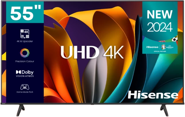 Hisense 55 - Inch 4K Ultra HD VIDAA Smart TV, Airplay 2, AI 4K Upscaler, Dolby Vision, With In-Built Free To Air Decoder, Bluetooth, HDMI, Chromecast, USB, Netflix, Youtube - Black (3YRs WRTY)