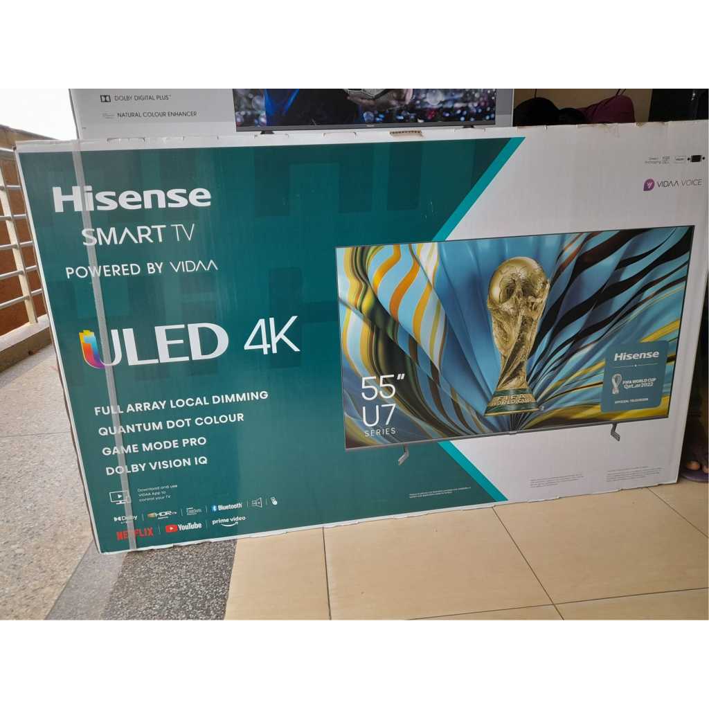The Hisense U6 Pro TV series is great for Netflix, the big game, and the real housewives of wherever. But the U7H is made for the gamers. It’s got our exclusive ULED technologies, 4K resolution, Quantum Dot Color, Dolby Vision HDR, Full Array Local Dimming zones. On top of all that, Hisense added a 120Hz Native panel for smoother, more fluid motion and HDMI 2.1, Variable Refresh Rate and Auto Low Latency Mode for gaming that looks sick, even if you suck. The U7H also has up to 1,000 nits peak brightness, which makes HDR ‘pop’ and means the picture is lit no matter how bright the room. All this looks great on paper. Now think how much better it would look on this TV. Hisense 55″Quantum 4K ULED 4k Smart TV Features 4K ULED Sharper, smoother pictures 4K greatness, but better. The U6 has our exclusive ULED technologies. They boost color, contrast, brightness, motion… we could go on. It’s the TV your old TV wants to be. QUANTUM DOT COLOR Over one billion colors Quantum Dot produces over one billion colors, purer, richer, more brilliant and accurate colors than a regular LCD TV. We could get into how it works. But it’s a lot easier to say it makes everything you watch look like the 4th of July. SCREEN SIZE Comes in three sizes The U6 comes in three screen sizes to suit different rooms and budgets. Take your pick from 55, 65 and 75-inch screens. Each one has all the features you need to produce incredible detail in even the most full-throttle gaming, full-on sports and action-packed movies. Game Mode Pro All the most advanced gaming tech, all in this TV, including high speed HDMI inputs and software that recognize gaming sequences to automatically adjust settings for smooth, uninterrupted play. The Automatic Low Latency Mode, Variable Refresh Rate and FreeSync minimize input lag, screen jitter, and frame tearing. Ultra Motion and 120Hz Native Refresh Rate Ultra Motion removes the digital ‘noise’ that can affect moving objects. So, everything you see is exceptionally clear. Enjoy smoother gaming with pictures that keep up with your play thanks to the 120Hz refresh rate. Dolby Vision™ – Dolby Atmos Dolby Vision HDR picture and Dolby Atmos sound are cinema technology for your home. They provide amazing realism you can see and hear in every scene. IMAX Enhanced and DTS Bring the cinema experience home. Combines digitally remastered 4K HDR content and DTS audio technologies with the best consumer products and streaming platforms. Built for people who want a more premier, at-home experience. Peak Brightness/Full Array Local Dimming Zones Screen brightness is measured in nits. One nit is as bright as one candle. The higher the nit rating, the brighter the screen. The average TV is 250-350 nits. Anything over 500 nits is extremely good. This is up to up-to-1,000 nits peak brightness across 72 local dimming zones. Backlit Voice Remote Makes controlling your TV easier. Open apps, turn the volume up or down, search for your favorite shows. And if the actual remote goes missing, use the buttons on the TV to activate ‘Find My Remote’. Five bucks says it’s down the back of the couch. Hands Free Voice Control With built-in microphones, you can change the channel, find the latest movie, stream your favorite video and more with your voice. The quicker, easier way to find whatever you want to watch, without touching a remote. If you want the ultimate gamer’s TV, this is it. Slicker, faster, sharper. The U7G is the epic TV for epic things. It’s great for all your favorite shows, sports and movies, but really, it’s made for gamers. Check out the full spec to get all the details.