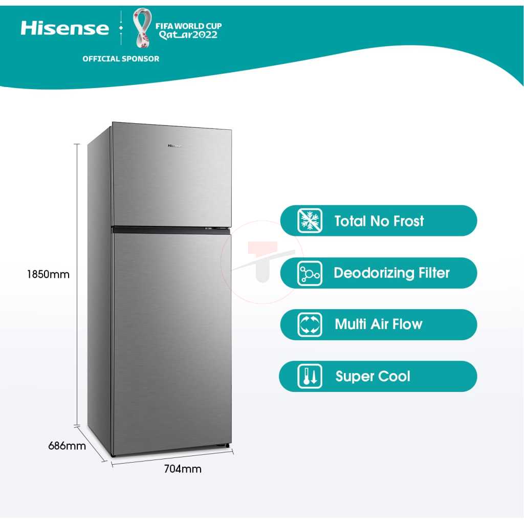 Hisense 599 Litre Fridge RT599N4ASU; Double Door Frost Free Top Mount Freezer Refrigerator – Silver. level, so the fridge maintains a constant temperature and food stays fresh.  Fast cooling saves With Super Cool you can cool food down quickly using the fridge’s highest cooling performance setting. This saves time the fridge needs to get down to the low temperature you want.  Always bright, easy on the eyes and energy consumption The LED lighting employed is designed to cover more area, and to go deeper into the fridge, which makes things easier to see on every level. And it’s brighter, but never harsh or too bright, so you easily find whatever you’re looking for.