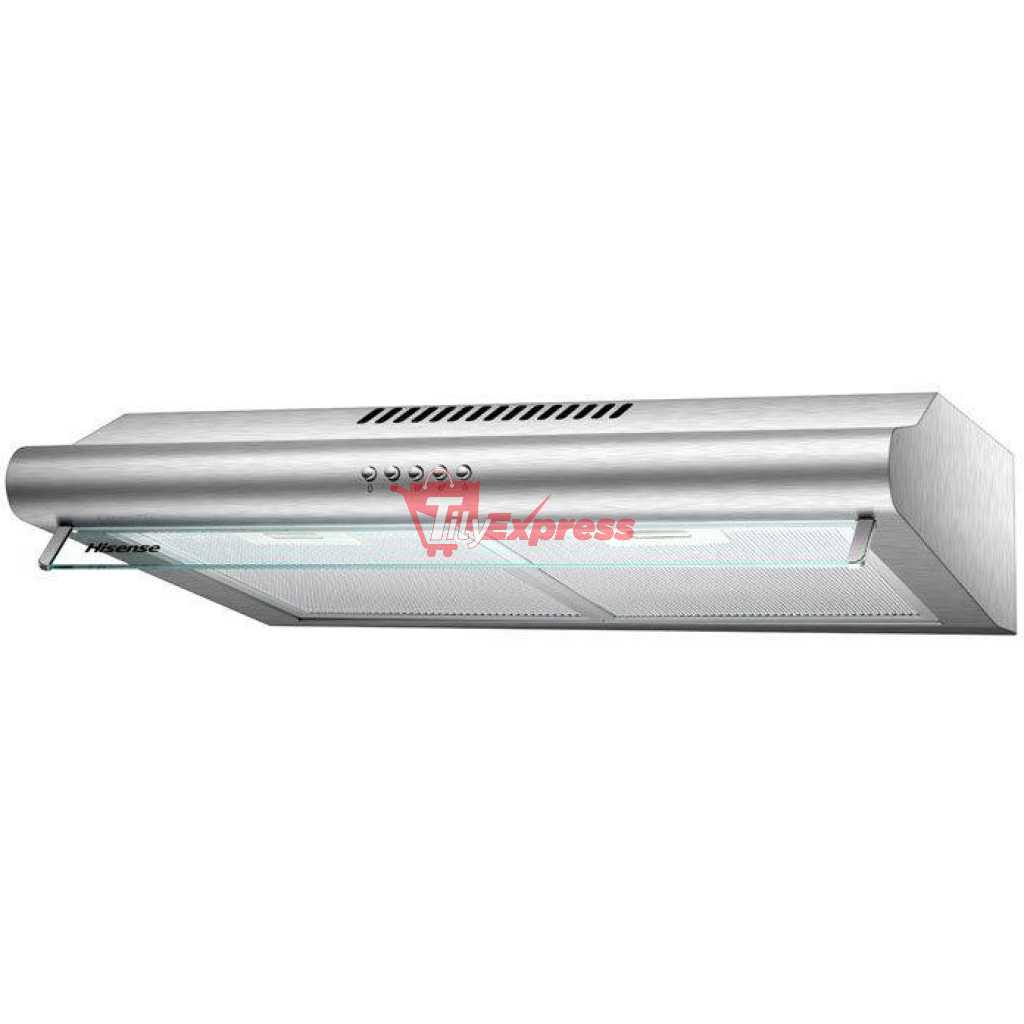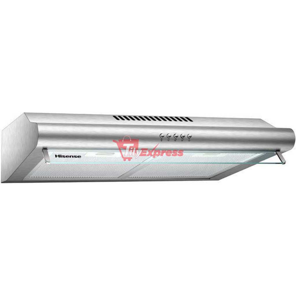 Hisense 60cm Cooker Hood HHO60PASS; Under Cabinet Kitchen Extractor Fan – Silver. 200M³/HR Extraction Power Stainless Steel Body Led Lamp 3-Speed Operation