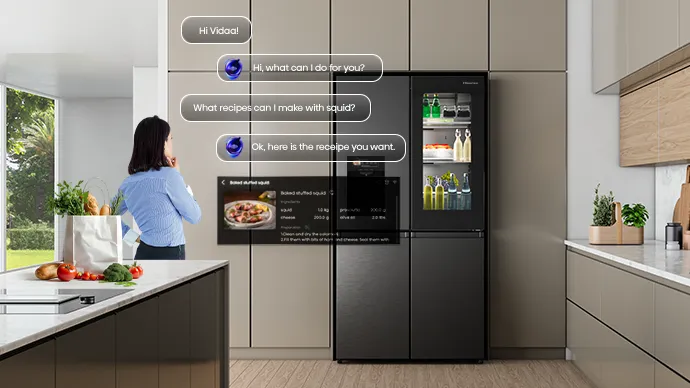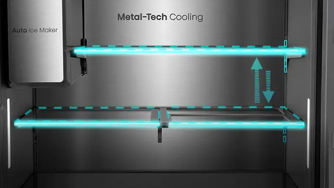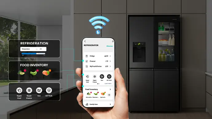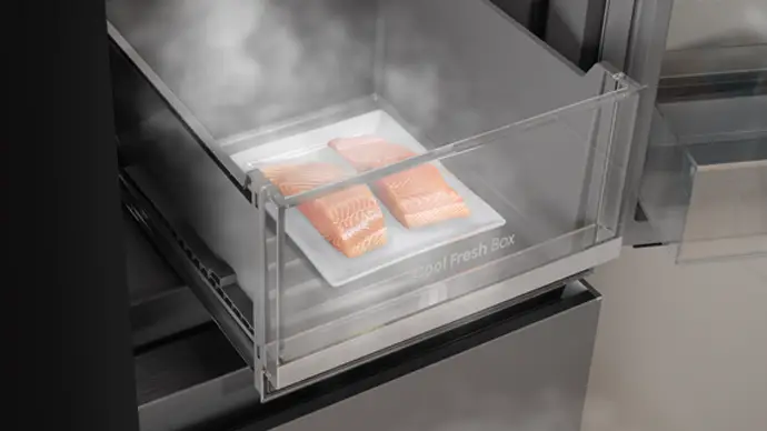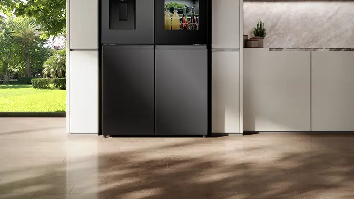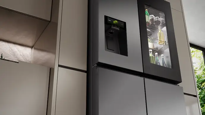 PureView Door with Sense Light – Automatically lights up when you approach within one meter for easy access 615L Capacity – Fridge 365L, Freezer 121L, My Fresh Choice 129L Inverter Compressor – Energy-efficient, quieter, consistent cooling, and longer-lasting performance. 10 years Compressor warranty 6.86" Intelligent Hub Touchscreen – Control food inventory, set expiration alerts, discover recipes, and create custom beverages. Beverage Master – Access a library of 20+ professionally crafted drink recipes. Voice Control – Operate the fridge hands-free with smart voice commands. ConnectLife + Wi-Fi – Monitor and adjust temperature settings remotely from your smartphone. Food Inventory Management – Track stored items and receive notifications before they expire. Advanced UV Ice & Water Treatment – UV sterilisation removes 99.9% of bacteria for safer ice and drinking water. Express Ice – Produces ice up to 50% faster than traditional ice-making systems. Anti-Bacterial Guard – Special antibacterial liner keeps the fridge interior hygienic. Metal Cooling System – Delivers faster and more consistent cooling. My Fresh Choice Zone – Convertible compartment that easily switches between fridge and freezer. Cool Fresh Box – Dedicated zone to keep fruits and vegetables fresher for longer. Flexible Storage – Sliding shelf for taller items, adjustable cantilever shelves, and durable metal glide drawers for smooth access. Door Alarm – Alerts you if the fridge or freezer door is left open. Premium Design – Flat door design integrates seamlessly with cabinetry. Product Finish: Dark stainless steel, fingerprint-resistant 2 Star Energy saving rating Product size: (W*D*H) 914*730*1790mm Warranty: 24 MonthsDimensionsWidth (mm)914Height (mm)1790Depth (mm)730