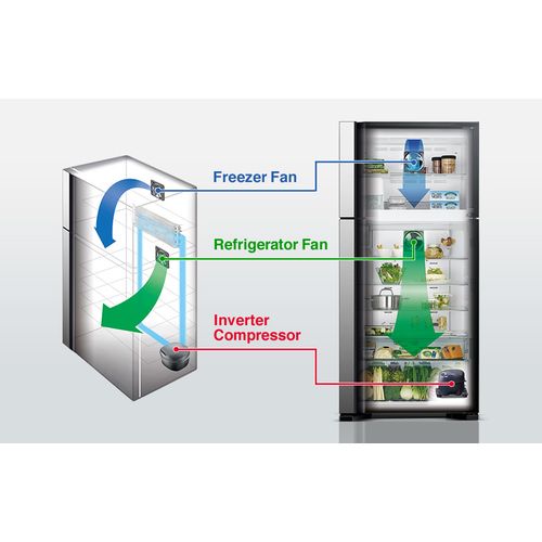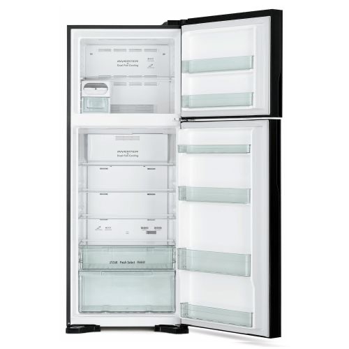Key Features: Hitachi Double Door Refrigerator RVG540 – 460 Liters – Glass Grey 460 Liters Capacity Inverter Compressor Dual Fan Cooling Glass Grey Finish Tempered Glass Shelves LED Light (Fridge and Freezer) Touch Controls Door Alarm Movable Twist Ice Tray