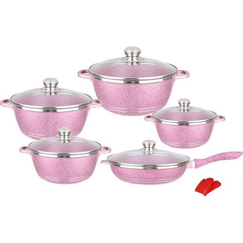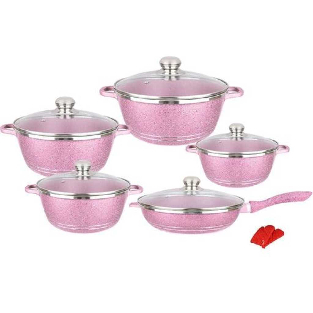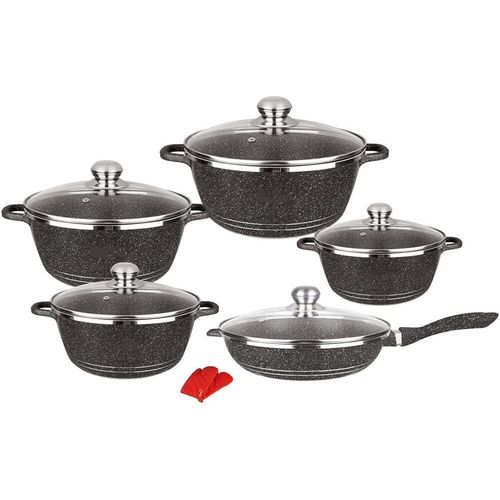 Key Features: Good Performance:Made of high-quality pressed aluminum with granite coating to provide highly scratch resistant durability and not easy to deform.Here‘s another benefit of aluminium:it heats up quickly and evenly,so you don‘t get the ‘hot spots‘. Superior Marble Stone Coating:Our granite frying pan and pot set adopts stone-derived,super non-stick coating,nonstick interior and exterior for easy cleaning.So these saucepans are ideal for creating healthy,low-oil alternatives to a variety of meals. Healthy Aluminum Body with Vented Lid:Transfer heat quickly,easy cooking.Free of BPA,lead and cadmium,.The ventilated glass lid allows steam to escape,and stop food from spilling,which means less clutter in your cooking space. Strong Practicality:Each piece of pots and pans set non stick is made with a flat bottom which allows it to be placed evenly over heat source suitable for gas,electric stove and ceramic hobs for everyday cooking.Package Include 1×10 pieces pots and pans set. What does this Cookware Set Include:Kitchen Cookware Set 10 Piece includes-28cm frying pan with lid,20cm,24cm,28cm and 32cm saucepans with lid for all your cooking needs.Ideal for cooking classics like Sausage and Bean Casserole or Chicken.