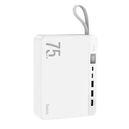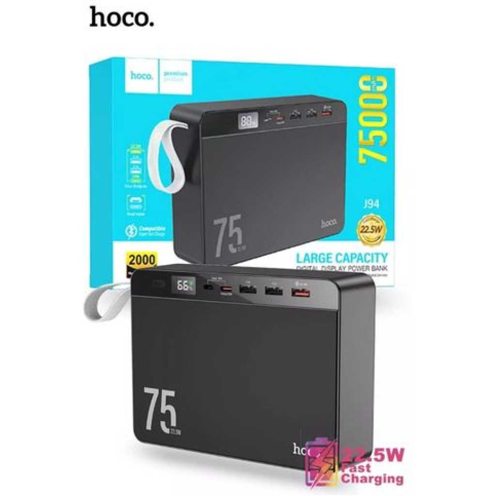 Powerful and portable mobile power bank with a massive capacity of 75000mAh and a rated capacity of 44000mAh. It features convenient input options including Micro-USB and Type-C, both supporting 18W input for Quick Charge (QC), Fast Charging Protocol (FCP), and Adaptive Fast Charging (AFC). The output options are versatile: USB 1 offers a fast charging speed of 22.5W supporting QC, FCP, SCP, and AFC, while USB 2 and USB 3 provide a standard output of 5V/2.1A. The Type-C port provides a powerful 20W output, compatible with Power Delivery (PD), QC, FCP, and AFC. The total output capability is 5V/3A. Equipped with an LED digital display, the J94 Overlord power bank allows you to easily monitor the battery level and charging status. The construction is made of high-quality materials, including an ABS + PC flame retardant shell and a reliable lithium polymer battery. it is a compact and portable device that can accompany you on your travels and adventures. The J94 Overlord power bank is a reliable companion that supports fast charging protocols and ensures your devices stay powered up wherever you go. Power Bank Portable Charger Hoco 75000mAh Hoco J94 Power Bank LED Digital Display, a portable device featuring a massive capacity of 75000mAh allowing for quick and efficient charging of multiple devices simultaneously. It includes convenient inputs for fast charging via Micro-USB and Type-C, with versatile output supporting QC, FCP, SCP, and AFC charging, in addition to adaptive fast charging technology. Features of Hoco 75000mAh Power Bank LED Digital Display: The power bank comes with a capacity of 75000mAh It features multiple input options including Micro-USB and Type-C, both supporting 18W fast charging (QC), Fast Charging Protocol (FCP), and Adaptive Fast Charging (AFC). The Type-C port provides a powerful 20W output, compatible with Power Delivery (PD), QC, FCP, and AFC. The total output capacity is 5V/3A. Equipped with a digital LED screen, the J94 Overlord power bank allows you to easily monitor battery level and charging status. Made of high-quality materials, including flame-resistant ABS + PC and reliable lithium polymer battery.