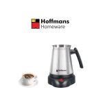 Key Features: Brand: Hoffmans Model: HM-2590 Type: Electric Turk Power: 600W Volume: 800 ml Control type: Mechanical (power button) Body material: Stainless steel Base: Removable, 360° rotatable Operation indicator: Yes