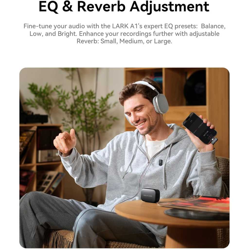 Key Features: 【48kHz/24-bit Studio】Grade Wireless Microphone – Handles sudden 120dB SPL noises without distortion, capturing crisp highs and deep lows—ideal for vloggers, streamers, and creators using a mini microphone for cinematic audio. 【3-Level Intelligent Noise Cancellation】Adaptive noise reduction (Weak/Medium/Strong) filters wind, traffic, and room echoes—ideal for wireless microphone users filming outdoors, live streams, or podcasts. 【Customizable Sound with EQ & Reverb】Fine-tune audio with LARK A1 wireless microphone’s 3 EQ presets (Balance/Low/Bright) + 3 Reverb modes (Small/Medium/Large). Sculpt clarity, depth, and texture—ideal for podcasters, ASMR creators, and filmmakers using a studio-grade mini mic. 【Up to 54h Battery Life】Achieve up to 54h using one transmitter (TX) alternately with the charging case—ideal for long shooting days without battery anxiety. 【200m (650ft) Wireless Range】Record up to 200m (650ft) with anti-interference tech. Capture wide scenes confidently using this mini wireless microphone’s dropout-free transmission. 【Ultra-Light Magnetic Mic】 At 8g and 9mm thick, this discreet wireless microphone attaches magnetically to collars, hats, or hidden spots—no bulk, just cinematic sound. 【6-Level Gain Control via App】 Adjust mic sensitivity from whispers to shouts effortlessly with the LarkSound app—smart mini microphone flexibility for any scenario.