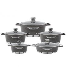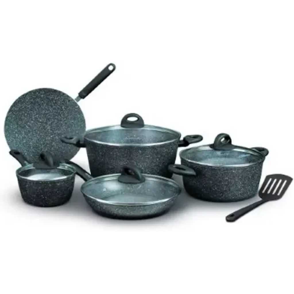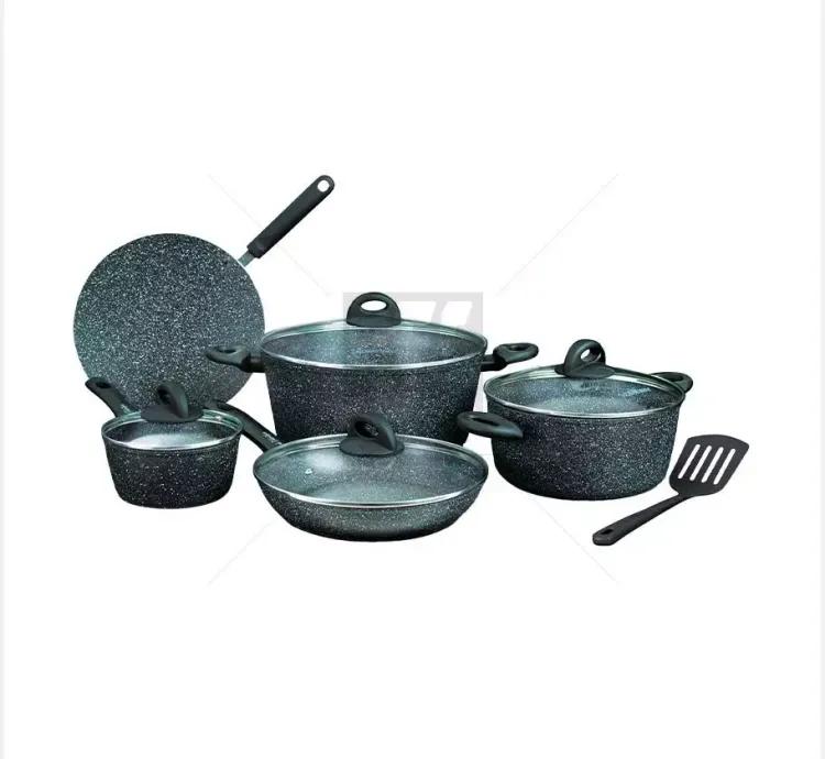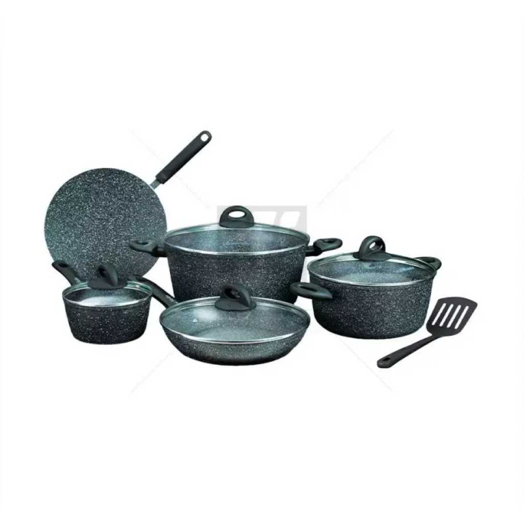 Homeway 10 Pcs Marble Cookware Set-Forged (Eternal Collection) – HW3696 5-layer non-stick marble coating Induction and gas stove compatible Soft-touch heat-resistant handles Ergonomic design for comfortable handling Includes various cookware pieces for versatile cooking Brand Key Features: 5-layer non-stick marble coating Induction and gas stove compatible Soft-touch heat-resistant handles Ergonomic design for comfortable handling Includes various cookware pieces for versatile cooking