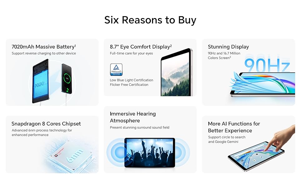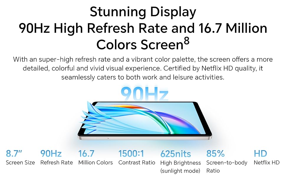 Key Features: ✅ [COMPACT & ULTRA-PORTABLE] – Lightweight aluminum design with 8.7″ display, perfect for travel, casual use, or entertainment on the go. [SMOOTH VISUAL EXPERIENCE] – 90Hz IPS LCD with up to 625 nits brightness delivers vibrant, fluid visuals in any lighting. ⚡ [FAST & EFFICIENT PERFORMANCE] – Snapdragon 680 chipset with 4GB RAM and Android 15 ensures responsive multitasking and smooth performance. [RICH STEREO SOUND] – Dual stereo speakers with Hi-Res and Hi-Res Wireless Audio offer immersive audio for streaming, gaming, and more. [LONG-LASTING BATTERY] – 7020mAh battery keeps you powered all day, with USB-C fast charging and OTG support for added convenience.