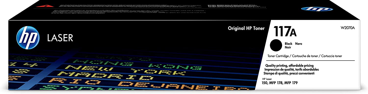 This standard HP 117A Black Toner Cartridge allows you to print business documents with colour highlights and vibrant full-colour marketing materials. Designed for your home or office and to your budget, the HP 117A Toner family allows colour printing at affordable costs. All Original HP Cartridges has been precisely created to deliver quality and reliable printing results. This is done by working harmoniously with HP Paper and your HP Printer. Over 50 Percent of the printing technology of your HP Printer is contained within the cartridge itself; meaning every time you replace your toner cartridge you are installing a brand new print engine. Unlike non-HP cartridges which can sometimes have hidden costs, Original HP Toner Cartridges offer total value for money in the form of flawless, hassle-free printing and are carefully crafted to match your printer’s size, speed, fusing temperature and paper type. Therefore, allowing you to maximise the impact of documents when you print. HP helps you reduce your environmental impact through a long-life cartridge and drum design that can reduce materials used over time. The low-melt toner helps save energy when printing and easy recycling with the HP Planet Partners program. All HP Original Toner contains recycled content, and once finished, it can be recycled with HP (see pack for instructions). Download the pre-paid postage labels from the HP website to return used products for recycling. The page yield is: 1000 pages “Page yield” refers to an estimated yield reached by an industry-standard calculation. However, a number of other factors can affect page yield (e.g. printer, printer settings, types of pages printed and page content) so this number is not guaranteed and should be taken as a guide only. Intelligence is built into HP Cartridges, which enables the system to optimise print quality and reliability. For consistent colour at fast speeds, always choose HP Original. Start printing and help stay within your budget at a low purchase price with the rest of the HP 117 Toner family– Standard Cartridges HP 117A Black Original Laser Toner Cartridge (W2070A) – 1,000 pages HP 117A Cyan Original Laser Toner Cartridge (W2071A) – 700 pages HP 117A Yellow Original Laser Toner Cartridge (W2072A) – 700 pages HP 117A Magenta Original Laser Toner Cartridge (W2073A) – 700 pages Parts HP 120A Original Laser Imaging Drum (W1120A) – 16,000 pages HP Laser Toner Collection Unit (5KZ38A) – 7,000 pages This cartridge is compatible for use with the following HP Printer models only. Using your HP Cartridge alongside an HP Printer results in the perfect balance of colour, permanence and reliability. HP Color Laser 150nw (4ZB95A) HP Color Laser 178nw (4ZB96A) HP Color Laser 179fnw (4ZB97A) Set Contains: 1x HP 117A Black Original Laser Toner Cartridge (W2070A)