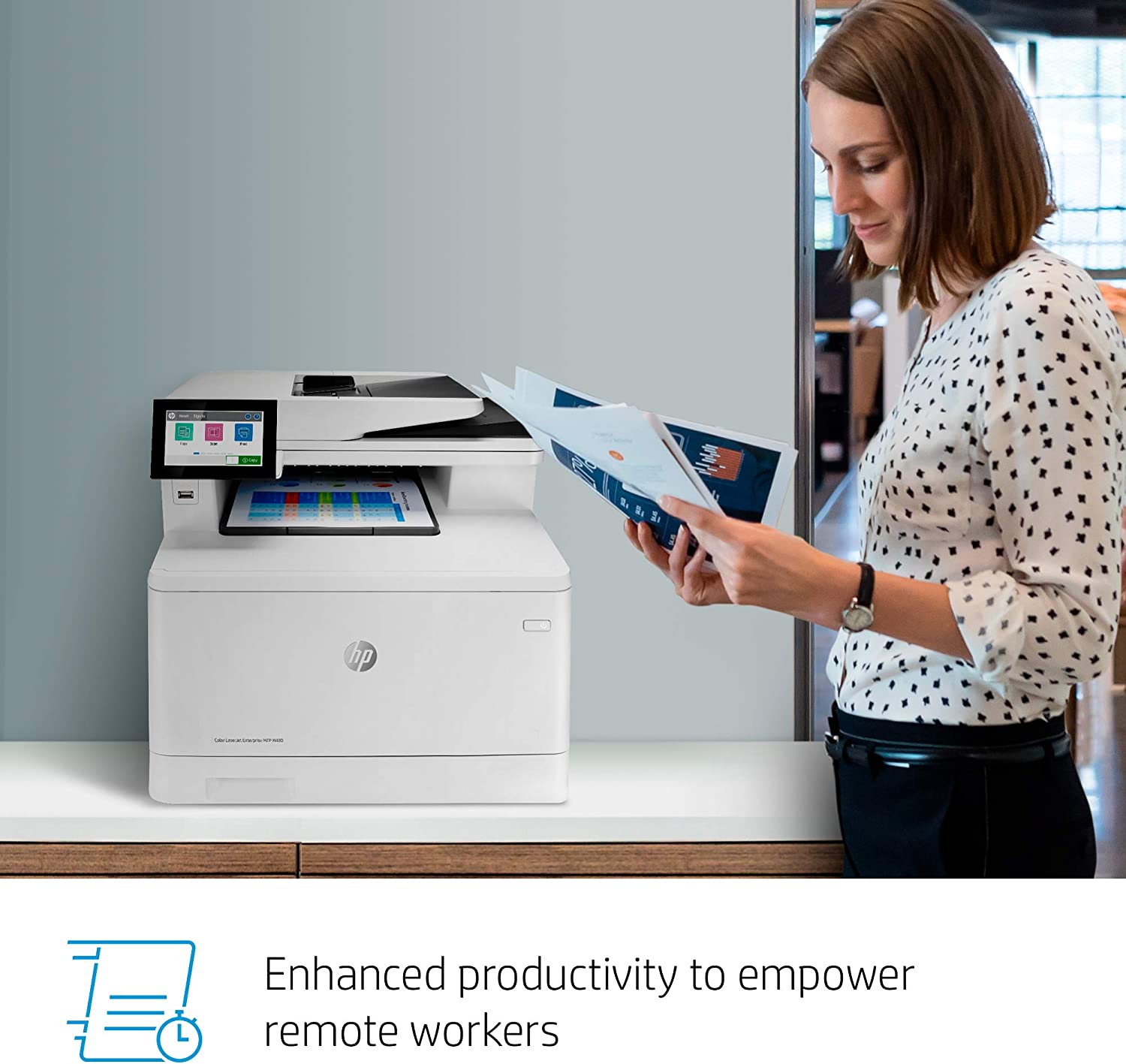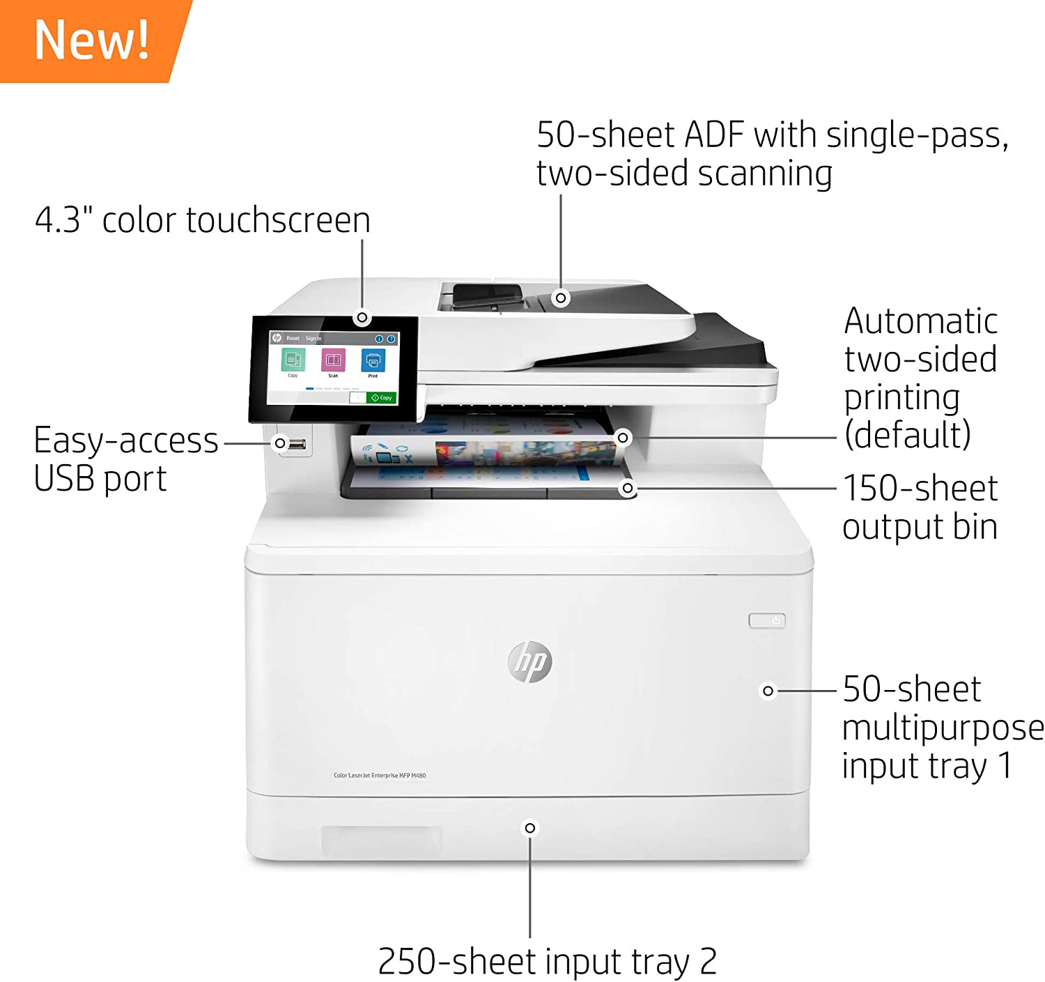 Key Features: HP Color LaserJet Enterprise M480f Multifunction Duplex Printer – White Easy to use, simple to manage: Print, scan, copy and fax with the entry-level HP Color LaserJet Enterprise M480f Multifunction Printer, a laser printer with speeds up to 29 ppm, a 50-sheet automatic document feeder and strong security Enhanced productivity to empower work teams: Support mobile workers with optional multifunction apps that meet your specific business needs Build business efficiency: Centralize control of your printing environment with HP Web JetAdmin HP Wolf Enterprise Security: The world’s most secure printers are always on guard with defensive layers to detect and self-heal from malware, and protect your data and business Automatic 2-sided printing: Speed through tasks and save paper by printing two-sided documents Sustainability is smart business: Reduce wasted paper and toner by only printing jobs that are truly needed, using HP Roam for Business Print cartridges you can trust: Avoid reprints, wasted supplies and service calls by using Original HP 414A/414X cartridges designed for your color printer One-year, onsite warranty: Get help with 24-hour, 7 days a week FREE HP phone support