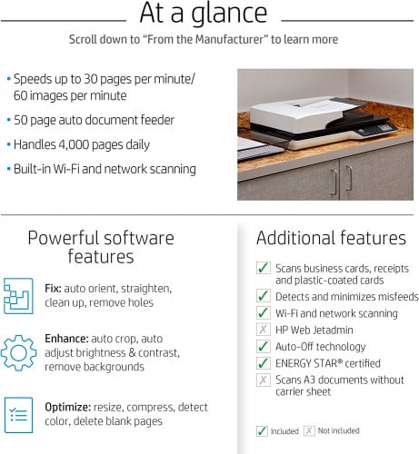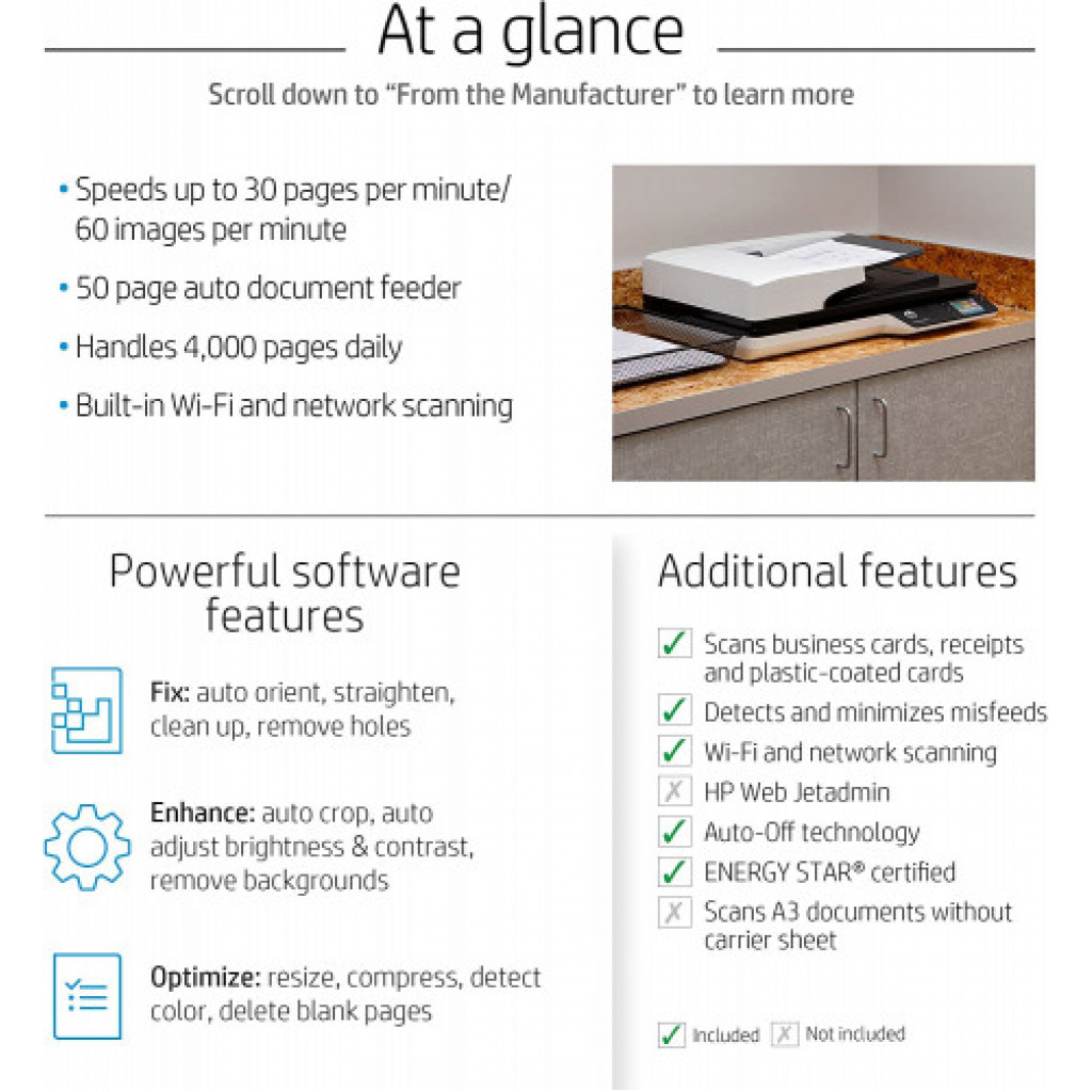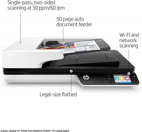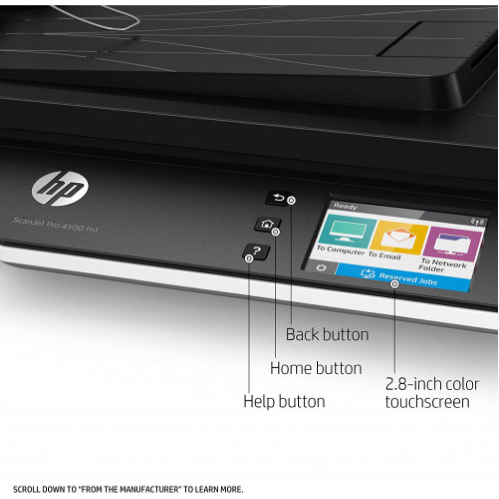 HP ScanJet Pro 4500 fn1 Network Scanner. Get fast two-sided scanning with a network scanner recommended for 4000 sheets per day. Digital sending is easy from the touchscreen via wireless network or Wi-Fi Direct. Send scans to mobile devices using the HP JetAdvantage Capture app. HP ScanJet Pro 4500 fn1 Network Scanner Features