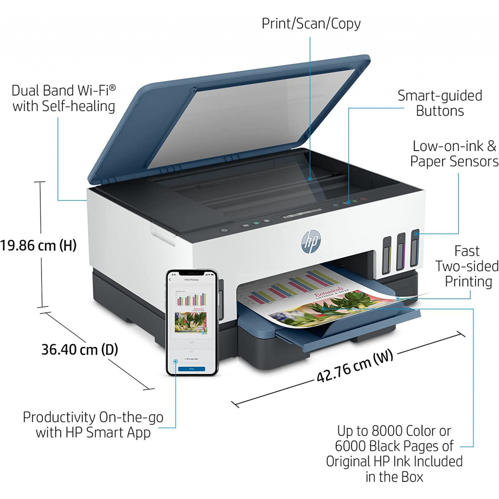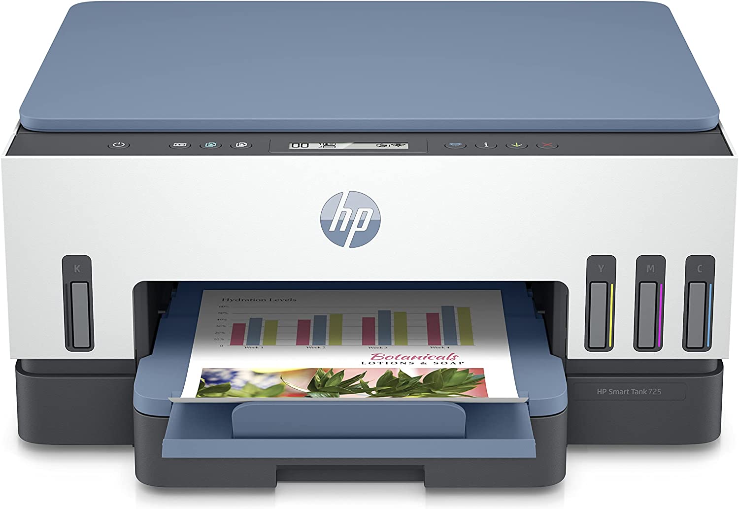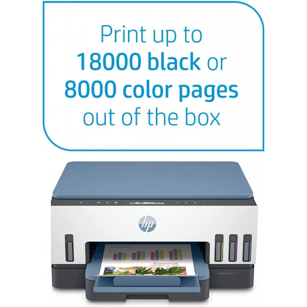HP Smart Tank 725 All-in-One Printer wireless, Print, Scan, Copy, Auto Duplex Printing, Print up to 18000 black or 8000 color pages, White/Blue [28B51A]