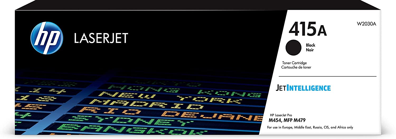 Print vibrant colour documents with Original HP Toner cartridges with JetIntelligence designed for your printer. Choose high-yield options for high-volume office printing and protection against counterfeits with HP anti-fraud technology. – Produce top-quality colour documents at speeds your printer was built to achieve. Original HP Toner cartridges with JetIntelligence are specially engineered to match your printer’s high-speed performance, while producing professional-quality prints – Print up to 3x more pages, using optional Original HP High Yield Toner cartridges with JetIntelligence – Protect against counterfeit cartridges and receive consistent quality with anti-fraud technology. Help manage business costs and print quality across your fleet. Rely on HP SureSupply to order the right HP cartridges for your HP printer – Plan ahead – use HP Web Jetadmin to track toner usage and receive regular supplies updates – Recycle your used HP Toner Cartridges via HP Planet Partner for free. Original HP cartridges returned through HP Planet Partners are never sent to a landfill. Visit HP’s site to download the pre-paid label For use with printers: HP Color LaserJet M454dn (W1Y44A), HP Color LaserJet M454dw (W1Y45A), HP Color LaserJet Pro M479dw (W1A77A), HP Color LaserJet Pro M479fnw (W1A78A), HP Color LaserJet Pro M479fdn (W1A79A), HP Color LaserJet Pro M479fdw (W1A80A). Set Contains: 1x HP 415A Black Original LaserJet Toner Cartridge (W2030A)