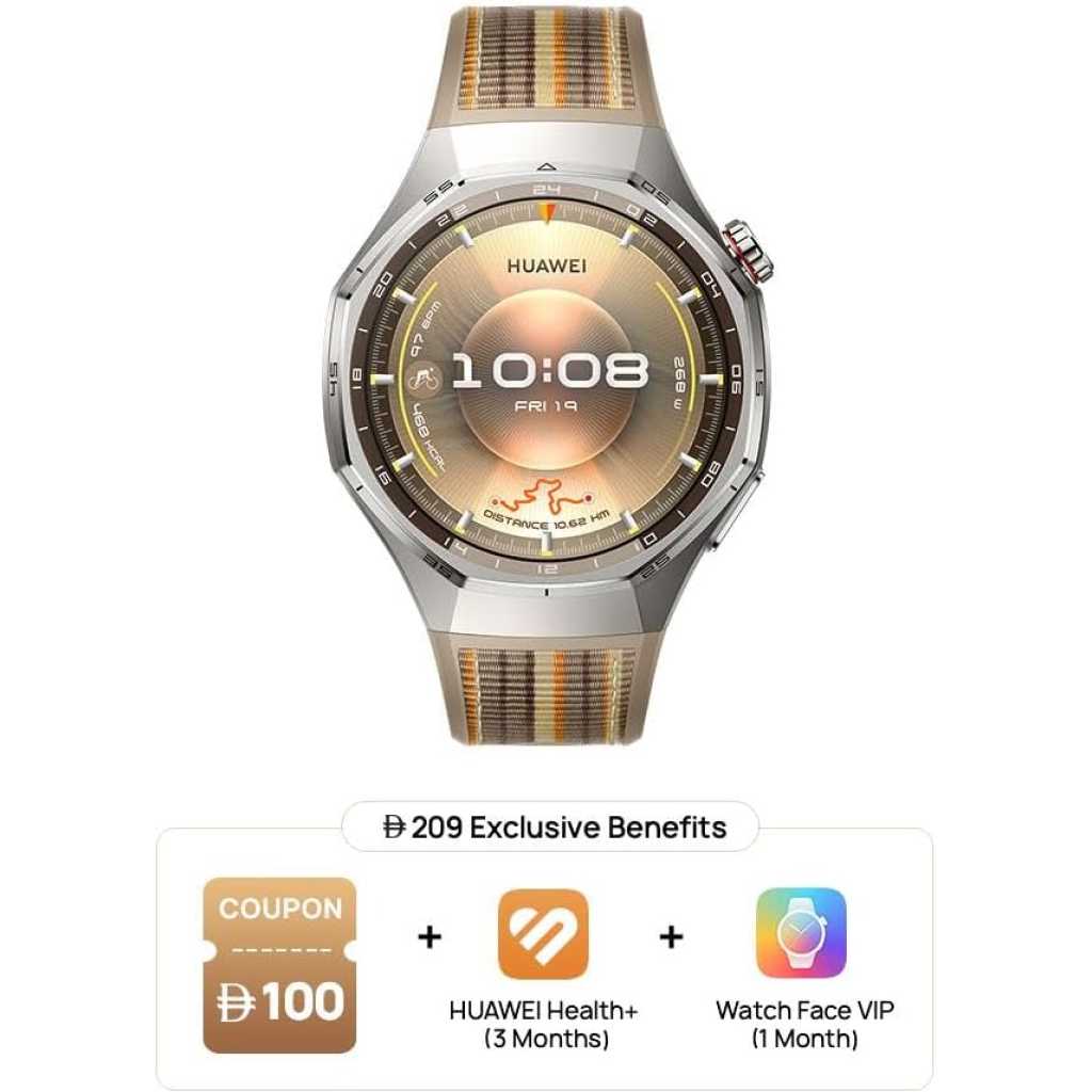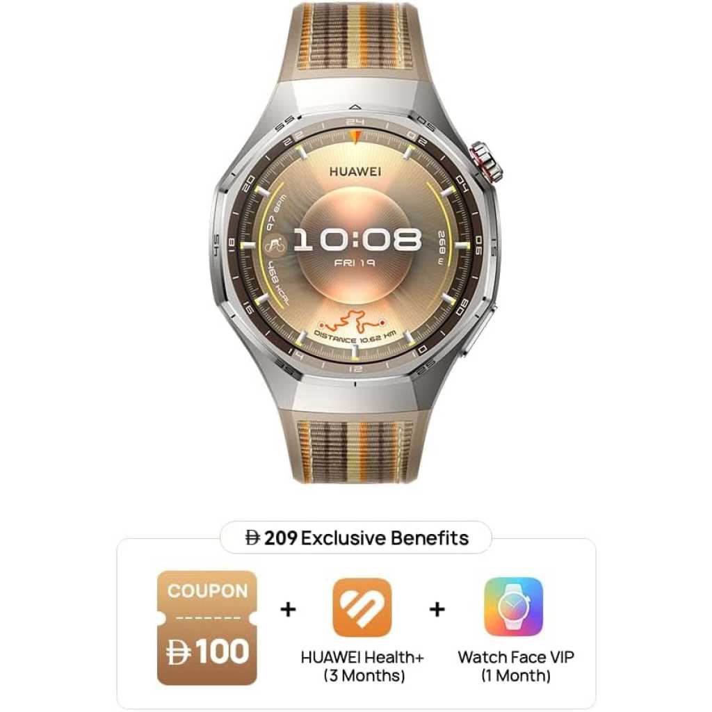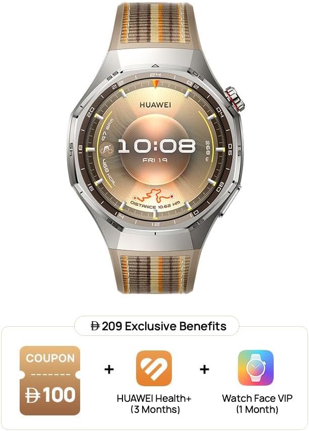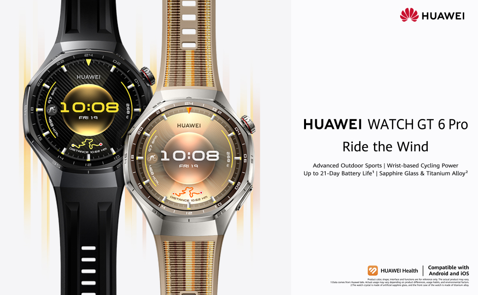Key Features: Up to 21-Day Battery Life: Signature strong endurance with up to 21 days battery life. With the innovative adoption of a high-silicon battery, the energy density surges by 37%. Go all out on your adventure on one charge. Broadly Compatible: HUAWEI WATCH GT 6 Pro is compatible with both iOS and Android for greater ease of use.Wrist circumference: 140–210 mm ECG Analysis: Hold down on the electrode on the side for 30 seconds to generate an ECG report on your watch after the measurement. Pro-level Cycling Tracking with Virtual Cycling Power: The watch always keeps you company in the case of emergency. Just relax and ride along. Cycle for up to 40 hours. It’s always here as you aim for somewhere far. Get new cycling power metrics on your wrist. Train with science. Iconic Stylish Design: The 1.47-inch AMOLED display boasts a 5.5% larger screen area for greater immersion.4 The brightness ramps up by 1.5 times at up to 3000 nits, ensuring easy legibility even under sunlight outdoors.
