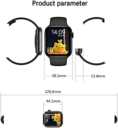 Key Features: HW22 Pro- Smart Watch Series 6, Bluetooth Call Waterproof with Silicone Band and Full Touch Screen, 44MM, Black. PLEASE CHARGE THE WATCH FOR ATLEAST 12 HOURS BEFORE FIRST USE. ✔️FULL TOUCH SCREEN: 1.7-inch full touch color screen with waterproof design you can wear it to wash hands, walk in the rain, bath or swim, etc. (except deep diving and hot water). ✔️LONG BATTERY LIFE: Built-in 210mAh large battery, a full charge only takes 2-3 hours can be used normally for 10 days, standby for 45 days. ✔️MULTIPLE SPORT MODES: The fitness watch has nine sport modes to select which are walk, run, hike, cycle, treadmill, fitness, mountain climbing, spinning and yoga. You can record and view the real-time data in exercise and you can open GPS sport mode on your phone to record your sport routes in real time. ✔️CAPABILITIES: After connecting your phone and smart watch via Bluetooth, the smart watch will vibrate to remind you of incoming calls, SMS and SNS messages (Facebook, Twitter, Instagram, Skype, Whatsapp, Linkedin, Messenger, etc.) No phone calls or text messages will be lost. Note: For Samsung phones, because some models are not compatible.