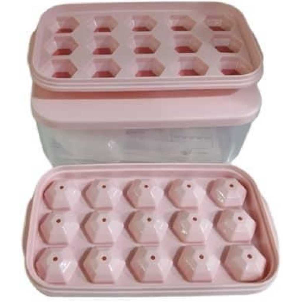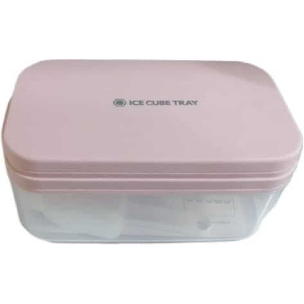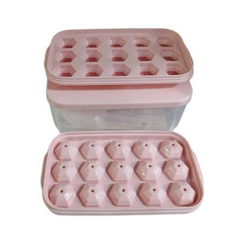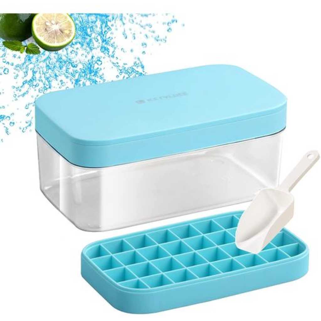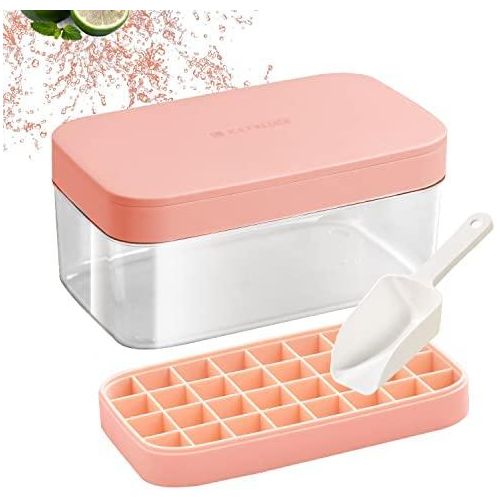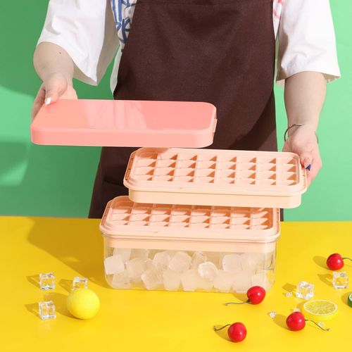 Easy Release Ice Cube Tray: Made of highly-elastic plastic, Flexible and Durable. Ice cubes release easily with just a twist. No need to wait for the ice cubes to melt a bit. You can empty the tray immediately after take it out from the freezer. The Silicone ice cube molds u0026 trays can not pour all cubes at a time. Practical Design u0026 Easy to Use: The lid keeps ice fresh and sanitary by preventing ice from absorbing freezer odors. The lid and The edges of the tray are designed higher for easy filling and easy transporting, not easy to spill. Enough Small Ice Cubes: This Ice tray makes 55 perfect mini nugget ice cubes each time, the ice bucket can holds 2 trays of cubes. So you can enjoy ice coffee or cocktails at any time. Our ice cube trays can also be used in making Miniature dessert, such as Jelly, chocolate, baby food, frozon yogurt, perfect size for ice chewer. Great for RV, home use, and parties. Safe and Convenient for Your Family: Both the tray and bin scoop are made of food-grade safety material, BPA free. The lid keeps ice cubes from absorbing freezer odor, and using scoop to take ice is more convenient and hygienic than using hand. Very suitable for non-private rooms such as office and student apartment, Stackable Ice Tray and Bin: Space-saving master. Perfect compact size is 10.6(L) x 6.7(W) x 3(H) inches, fits nicely in RV refrigerator and Home Fridges. This 3 in 1 set includes: 1 ice cube tray with lid, 1 storage container, 1 ice scooper.Food Grade Safe Material: The ice molds made of silicone and TPE material, BPA free, odorless and nontoxic. The ice cube tray with lid is safe and durable. Each tray has 32 grids, for a total of 64. Enjoy summer coolness at home, perfect for using at home, parties, whisky and bars, etc. Easy to Release: The ice cube trays bottom is made of soft silicone material not break after freezing for a long time, and is equipped with a corresponding release pressing plate which makes it easy to get ice cubes. More direct use of effects you can watch videos. Easy to Use: Pour the liquid into the ice tray for freezer for 4-6 hours. Each grid of ice tray is an independent individual, and there is a water level line on the edge of each grid to prevent too much water, which is more conducive to the separation of ice cubes. Wide Applications: The mini ice cube trays are perfect for whisky, cocktails, coffee. Try infusing mint for the perfect mojito or strawberry for a delicious lemonade. The size of each grid is 2.5×2.4×2.3cm, and you can also DIY various ice cubes. You will get: Each ice cube trays set comes with 2 layer, a 25.5*13.2*9.5cm ice container that can hold more than 200 ice cube balls and a mini scoop. This ice cube set is perfect for summer. If you have any questions please contact us at anytime.