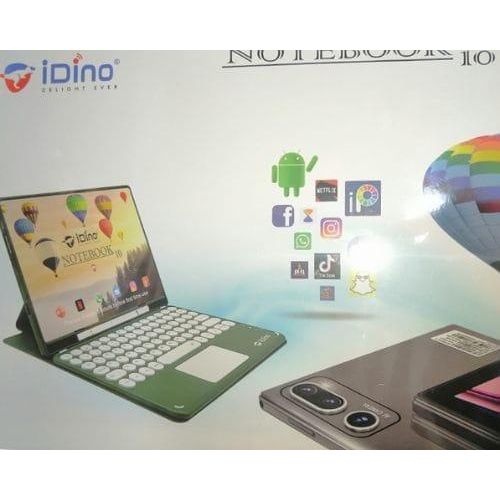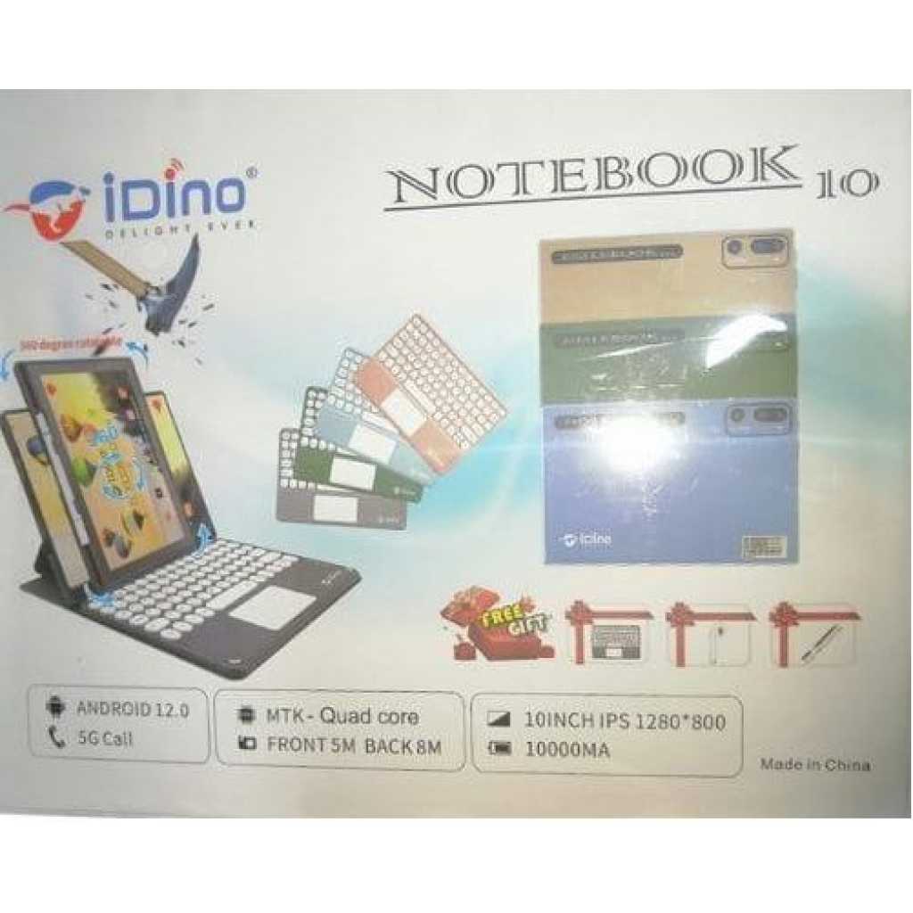 The All-New Idino NoteBook 10 is a special Tablet PC with a Dual SIM card slot and WiFi and is the Successor to the Idino Notebook 10 . A tablet produced to meet your Digital needs and make you super satisfied with an understanding of technology. This Premium Android Tablet has a decent look and it is a very nice tablet made with special material of metal and plastic, Slim and Sleeky Design, and can be used by adults and teenagers. This Android Tablet has an Android version of 12. The tablet features large, bright, and colorful icons on a 10.1-inch IPS Screen with 1080P full HD Screen Resolution letting the user navigate quickly. It has a touchscreen with ten-point touch support. The Quad-Core along with 512GB of internal storage and 8GB of RAM, makes this a highly capable tablet. WiFi facilitates easy connectivity of this tablet to different devices and calls to your beloved people by using Dual SIM cards. Let your child develop an early understanding of computer devices through the use of this tablet. IDINO Notebook 10 is a Premium model because of its high quality and awesome performance as it’s designed with a Quad-Core processor. The software of the Idino Notebook 10 is Android 12 and it can run all the applications and games no matter what are you using your tablet for. To entertain you. it’s the best choice with a 10000mAh rechargeable Li-ion battery. With a simple cable, you will be able to hook various OTG extensions and USB devices. The IDINO Notebook 10 Tablet has Multiple cameras to capture your photos beautifully. To watch videos with good colors you can enjoy 1080P Full HD Display. In general, the Notebook 10 tablet is an Edutainment system for you and your family The All-New Idino NoteBook 10 is a special Tablet PC with a Dual SIM card slot and WiFi and is the Successor to the Idino Notebook 9 . A tablet produced to meet your Digital needs and make you super satisfied with an understanding of technology. This Premium Android Tablet has a decent look and it is a very nice tablet made with special material of metal and plastic, Slim and Sleeky Design, and can be used by adults and teenagers. This Android Tablet has an Android version of 12. The tablet features large, bright, and colorful icons on a 10.1-inch IPS Screen with 1080P full HD Screen Resolution letting the user navigate quickly. It has a touchscreen with ten-point touch support. The Quad-Core along with 512GB of internal storage and 8GB of RAM, makes this a highly capable tablet. WiFi facilitates easy connectivity of this tablet to different devices and calls to your beloved people by using Dual SIM cards. Let your child develop an early understanding of computer devices through the use of this tablet. IDINO Notebook 10 is a Premium model because of its high quality and awesome performance as it’s designed with a Quad-Core processor. The software of the Idino Notebook 10 is Android 12 and it can run all the applications and games no matter what are you using your tablet for. To entertain you. it’s the best choice with a 10000mAh rechargeable Li-ion battery. With a simple cable, you will be able to hook various OTG extensions and USB devices. The IDINO Notebook 10 Tablet has Multiple cameras to capture your photos beautifully. To watch videos with good colors you can enjoy 1080P Full HD Display. In general, the Notebook 10 tablet is an Edutainment system for you and your family
