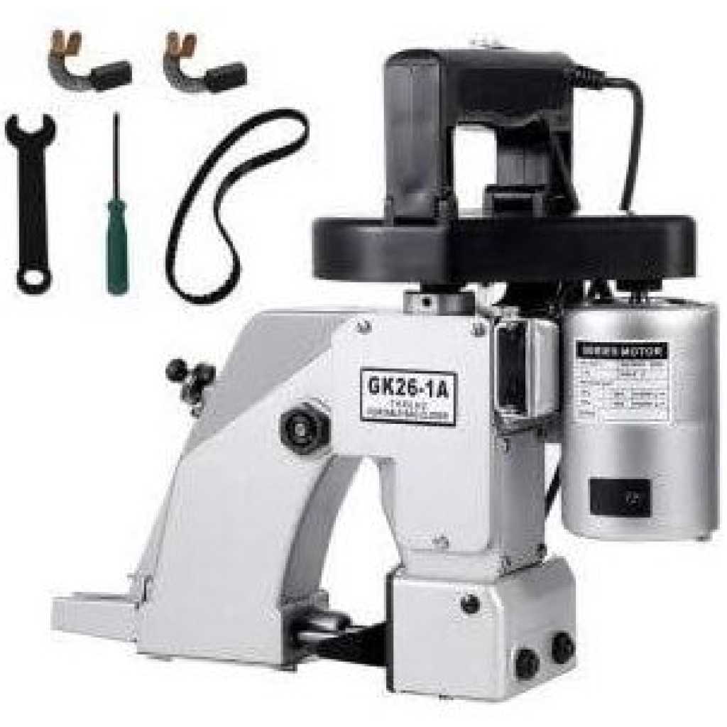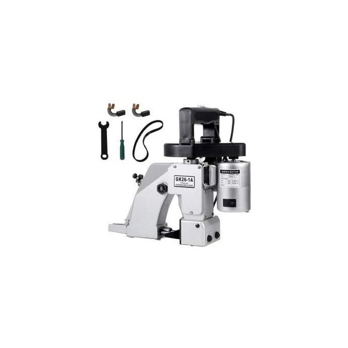 Industrial Portable Bag Sack Stitching Sewing Machine Combo + 4 Spools + 10 Needles ????The versatile hand held portable bag closer is the perfect solution for small volume bagging applications (250 – 300 bags/hour) that include the agricultural, food, pet, animal and chemical sectors. ????The Ikonix bag sewer GK26-1A will handle your most demanding bag-closing jobs safely and efficiently. ????Our advanced design features an automatic lubrication system. ????This fast, heavy-duty hand-held closer works with virtually all bag substrates including paper (single/multi-wall), woven polypropylene, laminated woven polypropylene, net, PE , burlap and cotton bags. ????Low Maintenance Extremely Easy to Operate – Can be Used with One Hand. Light Weight yet Rugged All Metal Construction Single-Thread Chain Stitch. ????Integrated Auto Lubrication System Portable Hand-Held operation. ????Automatic Thread Cutter ????Can be Hanged From Ceiling (with Optional Pulley System) Uses Both cardboard and Plastics Cored Spools ????Technical Details Speed 1100 rpm Power 90W 1,350 ± 150 rpm 8.5 mm (3 per inch) fixed Voltage 110 VAC/50-60 Hz Plug Type Nema 5-15p Machine Weight 12 Lbs (5.5 Kg) ✅Includes: 1(one) Machine 10(ten) Needle: DNx1 – #25 4 (four) Rolls of 1100 mts (3600ft) 1 (one) Tools