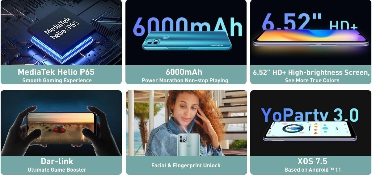 HOT 10i – NEW -2021, 6.52”, 4G 2GB RAM 32GB ROM 13MP 6000mAh-Black. Infinix Hot 10i runs on Android 11. It features a 6.52-inch IPS display with a resolution of 720×1,600 pixels. The smartphone is powered by the MediaTek Helio P65, paired with 2GB RAM. Its inbuilt storage of 32GB can be expanded (up to 256GB) via a microSD card. It packs a 6000mAh battery. Order this Infinix Hot 10i smartphone online from TilyExpress Uganda and have it delivered to your doorstep. The Hot 10i is another variation of the Hot 10-series from Infinix . But unlike other models in the series, the Hot 10i is the only device powered by MediaTek’s Helio P65 CPU. The model sports a more compact 6.52-inches screen with 720 x 1600 pixels resolution. It has a notch overhead which is the house for the selfie sensor. Specification-wise, the Infinix Hot 10i runs on the aforementioned MediaTek MT6768 SoC, aka Helio P65 CPU. The model has eight-core CPUs clocked at 2.0GHz, along with Mali-G52 MC2 GPU, 2GB RAM, and 64 GB internal storage. The device packs a dual camera setup on the back. These include a 13-megapixel autofocus sensor with f/1.8 aperture, and a 2-megapixel depth sensor, coupled with four LED flashes on the rear. For selfies, you are getting a single 8-megapixel lens kept within the notch upfront. It supports FaceID and comes with a rear-placed fingerprint scanner. You are also getting dual nano-SIMs with a 4G LTE network on both SIMs, a large 6000mAh battery, and the Android 11 with XOS 7.5 out of the box.