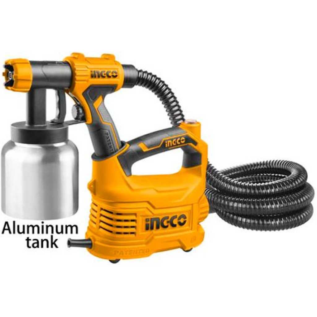 INGCO SPG5008-2 HVLP Floor Based Spray Gun 500Watt. Voltage: 220-240V~50/60Hz Input power: 500W Spraying Pressure: 0.1-0.2Bar Max flow: 850ml/min Max. viscosity: 50DIN-s Power cord length: 2.0m 800ml Aluminum container Accessories: 1x viscosity measuring cup 1x nozzle cleaning needle 1x shoulder strap Key Features: INGCO SPG5008-2 HVLP Floor Based Spray Gun 500Watt. Voltage: 220-240V~50/60Hz Input power: 500W Spraying Pressure: 0.1-0.2Bar Max flow: 850ml/min Max. viscosity: 50DIN-s Power cord length: 2.0m 800ml Aluminum container Accessories: 1x viscosity measuring cup 1x nozzle cleaning needle 1x shoulder strap