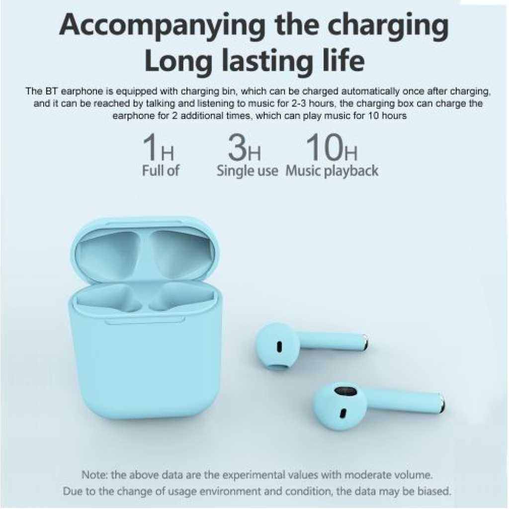 Key Features: Inpods 12 BT5.0 TWS Wireless Headphones In-Ear Stereo Sound. BT5.0 chip, quick transmission speed and long transmission distance, lower consumption and wide compatibility. It can be used separately or in pairs, you can also connect two mobile phones separately to meet your different needs. One-key touch control of song, call, volume and voice assistant. 300mAh charge box, long battery life for 10 hours. Three-dimensional surround sound, bring you pure music. IPX4 waterproof and sweatproof, not afraid of rain and sweat.